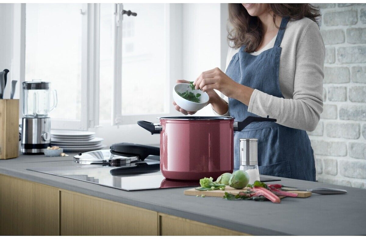 زودپز WMF Fusiontec Perfect Premium 6.5L ترکیبی از عملکرد بالا، طراحی زیبا و ایمنی کامل است. فناوری Fusiontec که از ترکیب فولاد و مواد معدنی ساخته شده، گرما را به طور یکنواخت پخش میکند و باعث پخت سریعتر و حفظ طعم غذا میشود. این زودپز تا ۷۰٪ سریعتر از روشهای سنتی غذا را آماده کرده و به کمک سیستم ایمنی چندمرحلهای، از هرگونه خطر جلوگیری میکند.