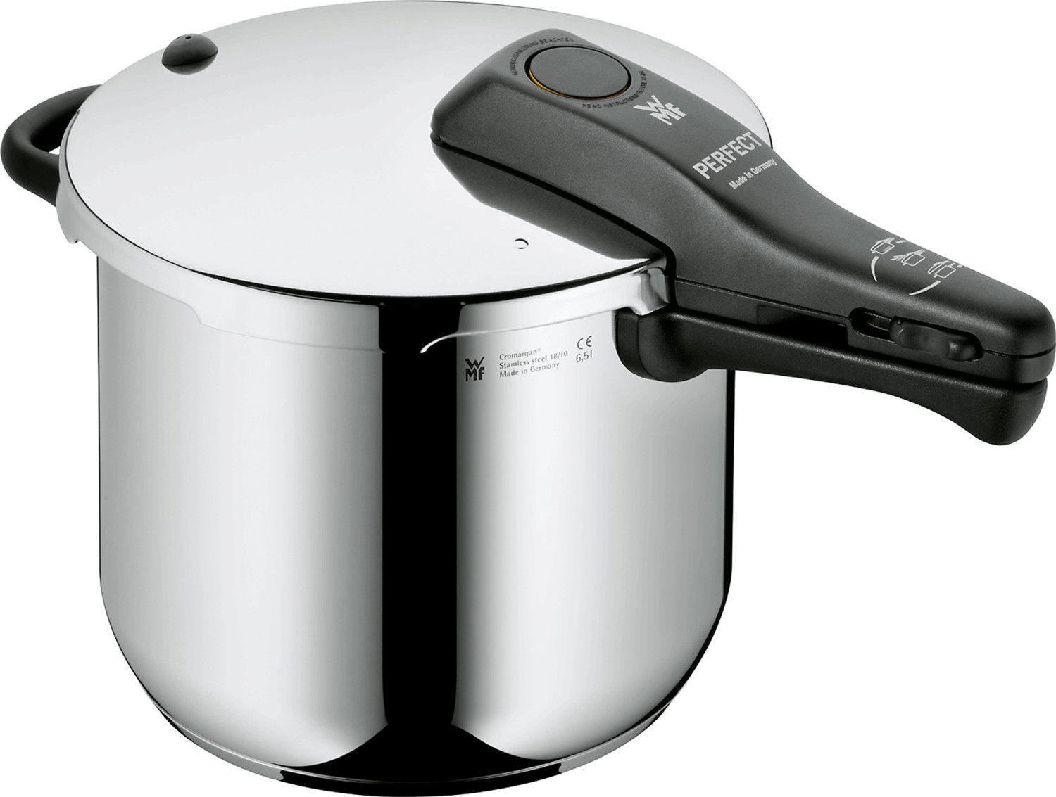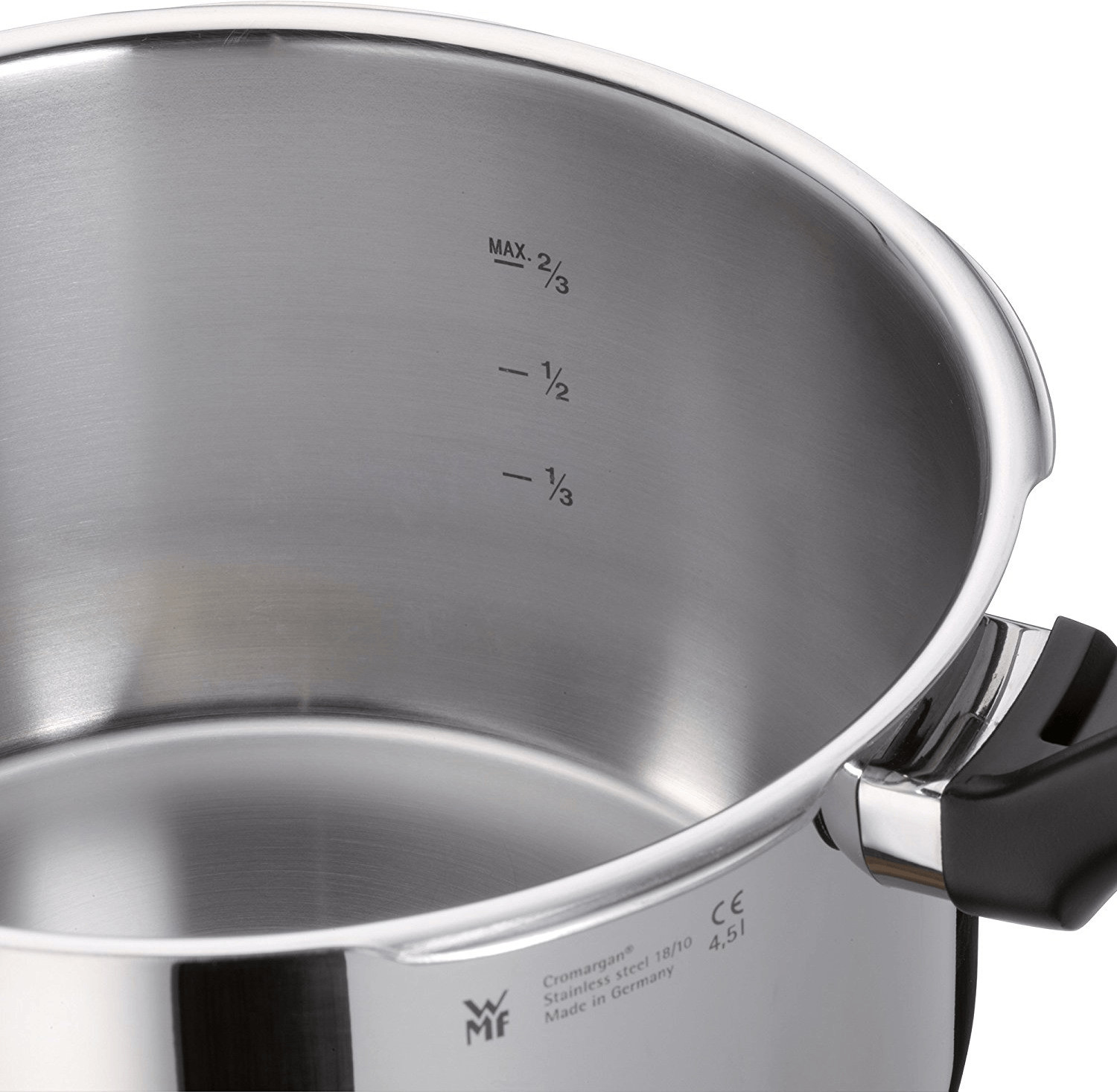 زودپز WMF Perfect 22 cm با ظرفیت 6.5 لیتر، از جنس فولاد ضدزنگ Cromargan® ساخته شده و با کف TransTherm®، گرما را یکنواخت توزیع میکند.