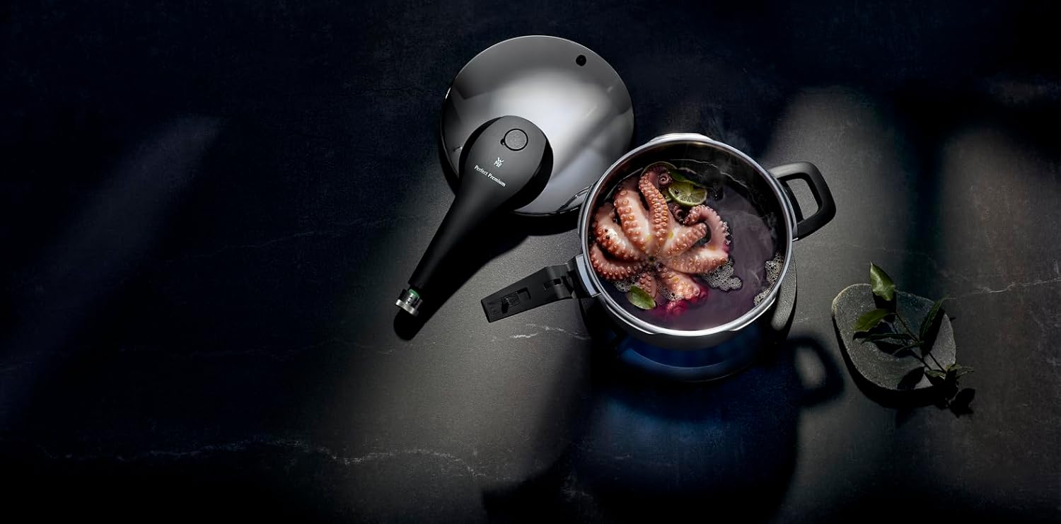 WMF Perfect Premium Fusiontec Schnellkochtopf Induktion, Dampfkochtopf 3l, High-Tech Keramik, 2 Kochstufen, All-In-One-Drehknopf, schwarz | قیمت یورویی 199.99€