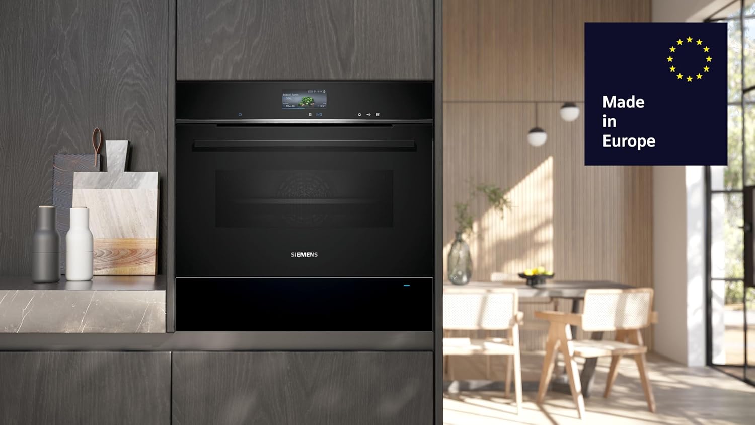 Siemens BI710C1B1 iQ700, Smarte Wärmeschublade, 60 x 14 cm, Schwarz, Niedrigtemperaturgaren, Teller vorwärmen, push und pull - Funktion لینک آمازون : https://www.amazon.de/dp/B0CK4R5GTN?th=1&psc=1 عملکرد شهودی از طریق فیلدهای لمسی قابل انتخاب مستقیم کشیدن و فشار دادن - باز و بسته کردن آسان کشو بدون دسته Home Connect - کشوی گرمکن خود را در هر زمان و هر مکان، حتی با فرمان صوتی، کنترل کنید. کشوی ۱۴ سانتیمتری به طور ایدهآل با یک دستگاه جمعوجور ۴۵ سانتیمتری (مثلاً فر جمعوجور، بخارپز یا دستگاه قهوهساز تمام اتوماتیک) ترکیب میشود. پخت و پز در دمای پایین: برای پخت و پز آهسته و ملایم در دماهای پایین