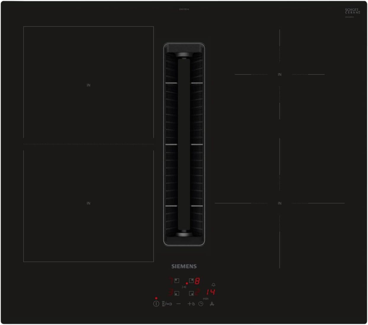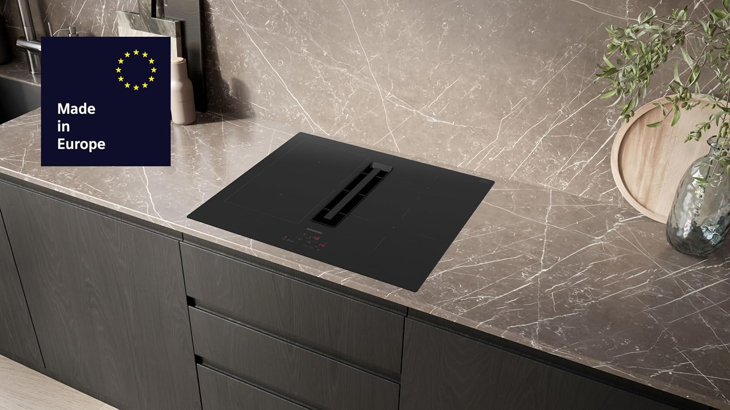 Siemens ED611BS16E iQ300, Kochfeld mit Dunstabzug (Induktion), 60 cm, Rahmenlos aufliegend, Schwarz, flächenbündig, touchControl, powerBoost – Erhöhe die Power einzelner Induktionszonen | قیمت یورویی 1149€