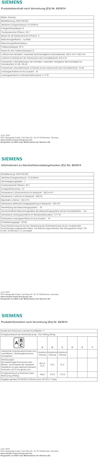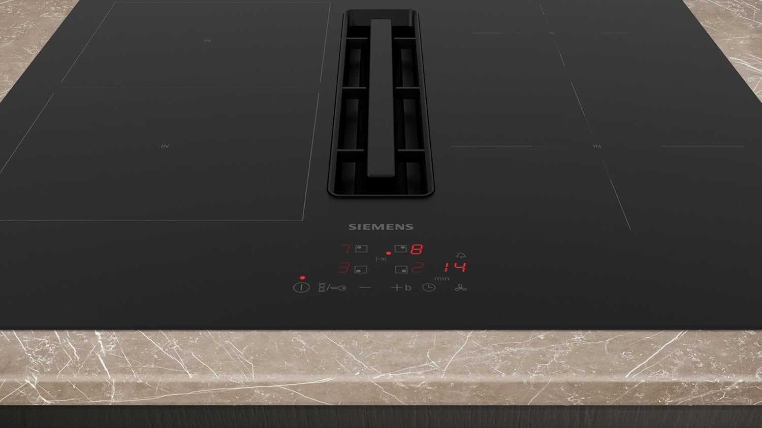 Elegantes Design für jede Küche: Entdecke die Siemens mit rahmenlosem Einbaudesign und eleganter schwarzer Farbe. Perfekt für die Aufwertung deiner Küche mit einer Breite von 60 cm und 4 Induktionskochzonen Schnelles Kochen mit powerBoost: Ausgestattet mit der powerBoost-Funktion bringt das Kochfeld Wasser blitzschnell zum Kochen. Die Quick Start Funktion ermöglicht es dir, sofort mit dem Kochen zu beginnen, ohne lange warten zu müssen Leise und effiziente Lüftung: Mit der iQ Silence Drive Technologie genießt du starke Lüfterleistung bei minimaler Lautstärke. Die Intensivstufe sorgt für schnelle Absaugung, während die Nachlauffunktion Komfort bietet Sicher kochen mit Vertrauens: Sicherheit steht an erster Stelle mit Kindersicherung, Überlaufschutz und Sicherheits-Zeitabschaltung. Topferkennung und Restwärmeanzeige garantieren zusätzliche Kontrolle während des Kochens Einfache Installation und starke Leistung: Mit Abmessungen von 223 x 592 x 522 mm passt das Kochfeld ideal in deine Küche. Eine Anschlussleistung von 7400 W und ein 110 cm langes Kabel ermöglichen eine unkomplizierte Installation durch eine Elektrofachkraft | قیمت یورویی : 1149€