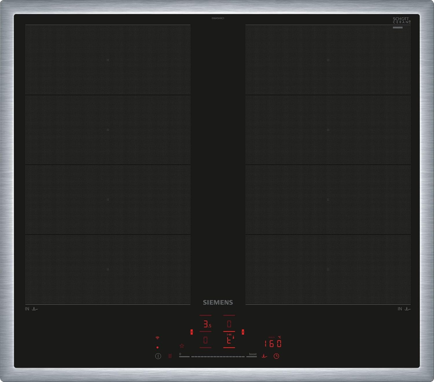 Siemens EX645HXC1E iQ700, Smartes Induktionskochfeld, 60 cm, Schwarz, Mit Rahmen aufliegend, varioInduktion, TouchSlider, Bratensensor Pro - Braten ohne Anbrenngefahr | قیمت یورویی 594.55€