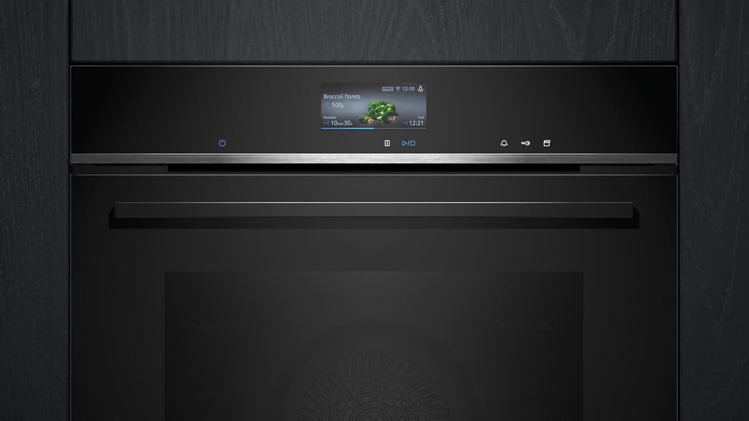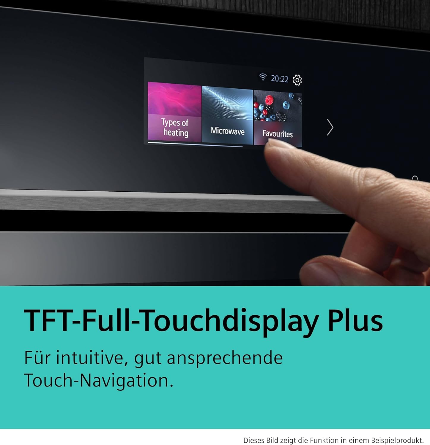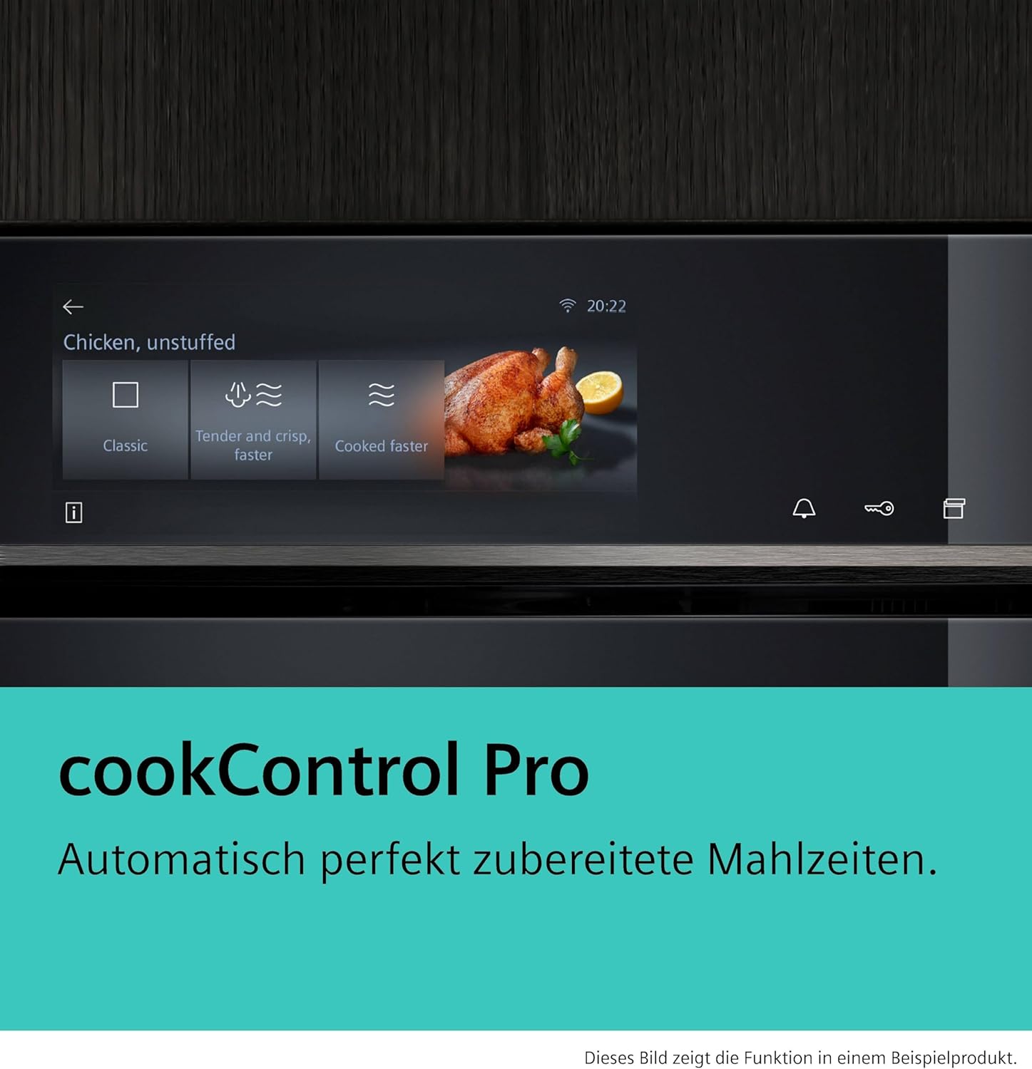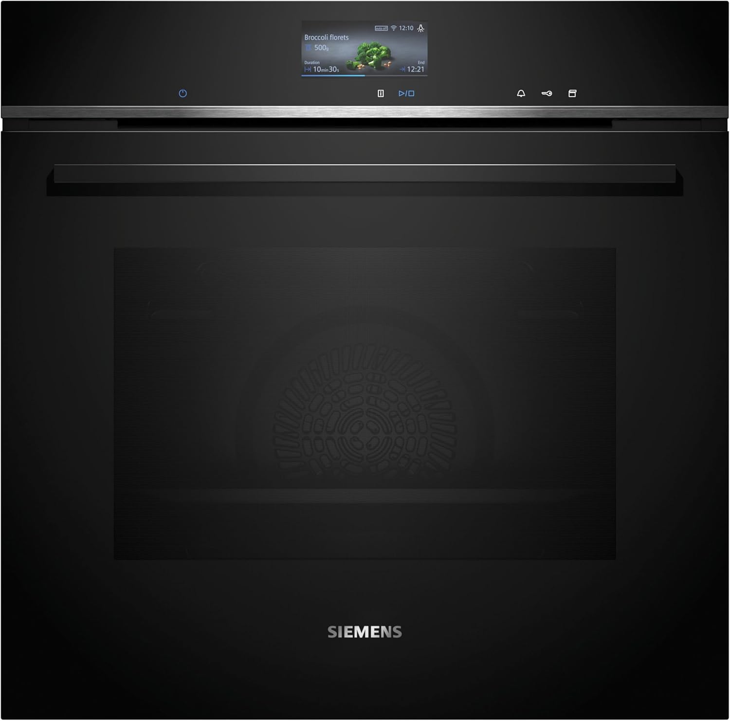 Siemens HS736G3B1, Smarter iQ700 Einbau-Dampfbackofen, 60 x 60 cm, Made in Germany, Hydrolyse Selbstreinigung, Bratenthermometer, Air Fry, Farb-Display, 4D Heißluft, Backautomatik, Pizzastufe, schwarz Black Leicht reinigend- ecoClean iQ700 - mit Dampf
