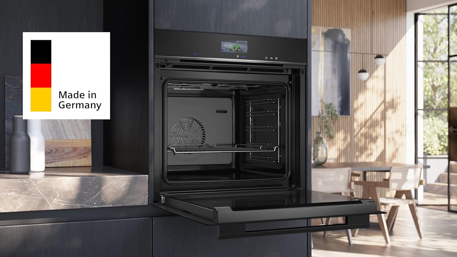 رتبه‌بندی بهره‌وری انرژی A+ ساخت آلمان: این فر که در آلمان تولید می‌شود، با مصرف برق کم، نتایج پخت عالی ارائه می‌دهد. ویژگی‌های هوشمندی مانند پیش‌گرمایش سریع و coolStart مصرف انرژی را بیشتر بهینه می‌کنند. عملکرد آسان با صفحه لمسی رنگی و cookControl Pro: صفحه لمسی TFT با کنتراست بالا، ساختار منویی بصری و عملکرد لمسی روان را ارائه می‌دهد. از طریق منو، خود را در دنیای نوآورانه cookControl غرق کنید. بر اساس ظرف و وزن، سیستم هوشمند به طور قابل اعتمادی بهترین تنظیمات را برای نتایج پخت بهینه پیدا می‌کند. فر خود تمیز شونده با هیدرولیز و اکولیز: این ویژگی تمیز کردن فر را به کاری کودکانه تبدیل می‌کند. پوشش پنل پشتی ecoClean کثیفی و بو را در خود حل می‌کند. عملکرد humidClean از هیدرولیز برای تمیز کردن فر استفاده می‌کند. در پایان فرآیند تمیز کردن، تنها کاری که باید انجام دهید این است که آن را با یک پارچه مرطوب پاک کنید و فر دوباره مانند روز اول بدرخشد. بخارپز پلاس (Steam Cooking Plus) در کنار دماسنج برشته‌کاری پلاس (Roasting Thermometer Plus): در حالی که برنامه بخارپز به شما امکان می‌دهد غذاهای سرشار از ویتامین را در کمترین زمان ممکن آماده کنید، دماسنج به شما امکان می‌دهد برشته‌های خود را با دقت بسیار بالا کنترل کنید. Home Connect: با برنامه Home Connect، می‌توانید از تمام پتانسیل فر هوشمند خود استفاده کنید. برنامه‌ها را در هر زمان و هر مکان کنترل و تنظیم کنید، حالت‌های گرمایشی جدیدی مانند پیتزا یا سرخ کردن در هوای آزاد اضافه کنید و فر را از طریق دستیارهای صوتی کنترل کنید.