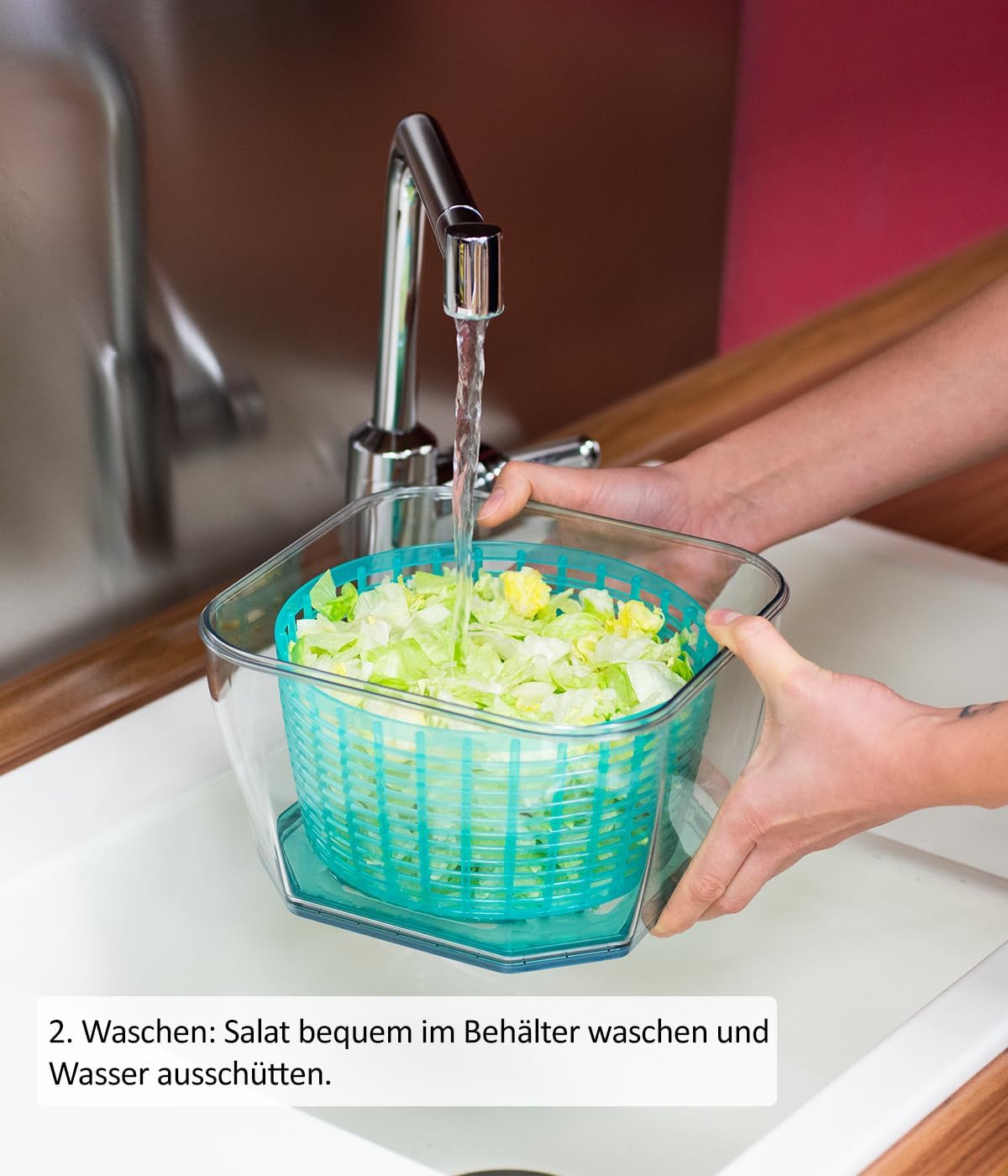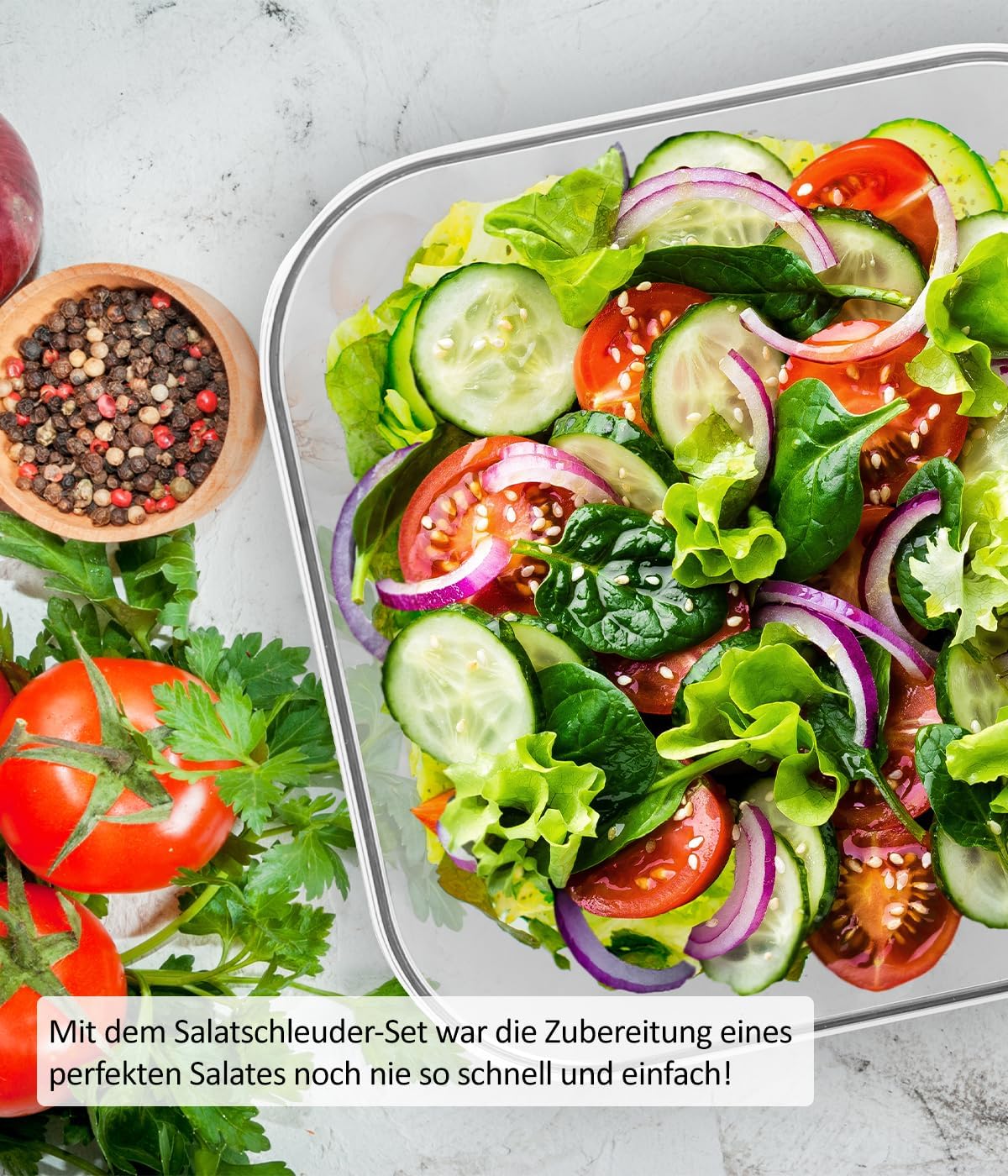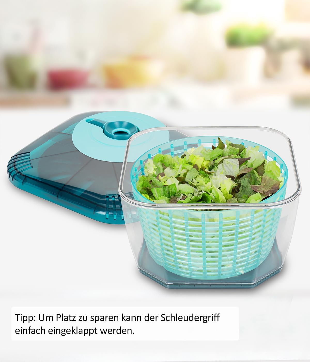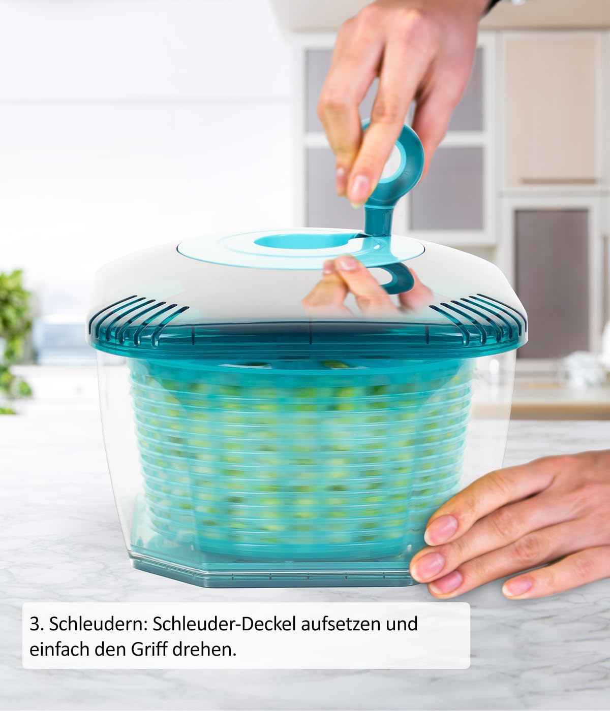 Zaubern Sie ganz einfach und schnell tolle Salate mit der Nicer Dicer Chef Professional Salatschleuder. Auffangbehälter mit 5.2 L Fassungsvermöögen. Großes Schleudersieb und Schleuder-Deckel für schnelles trocknen nach dem Waschen Nach dem Schleudern können Sie den Auffangbehälter weiter für Ihren Salat verwenden. | قیمت یورویی : 34.89€