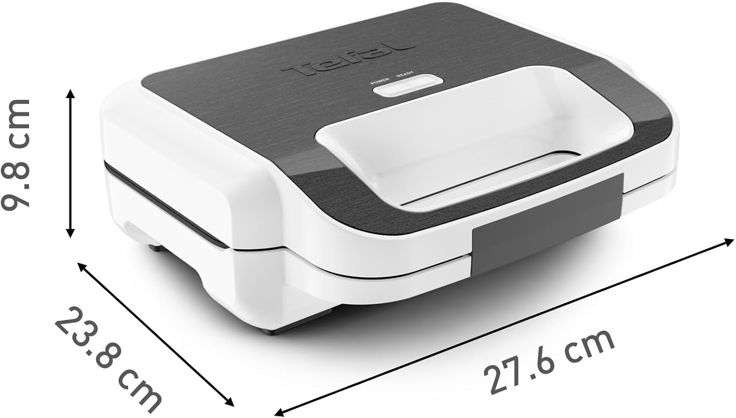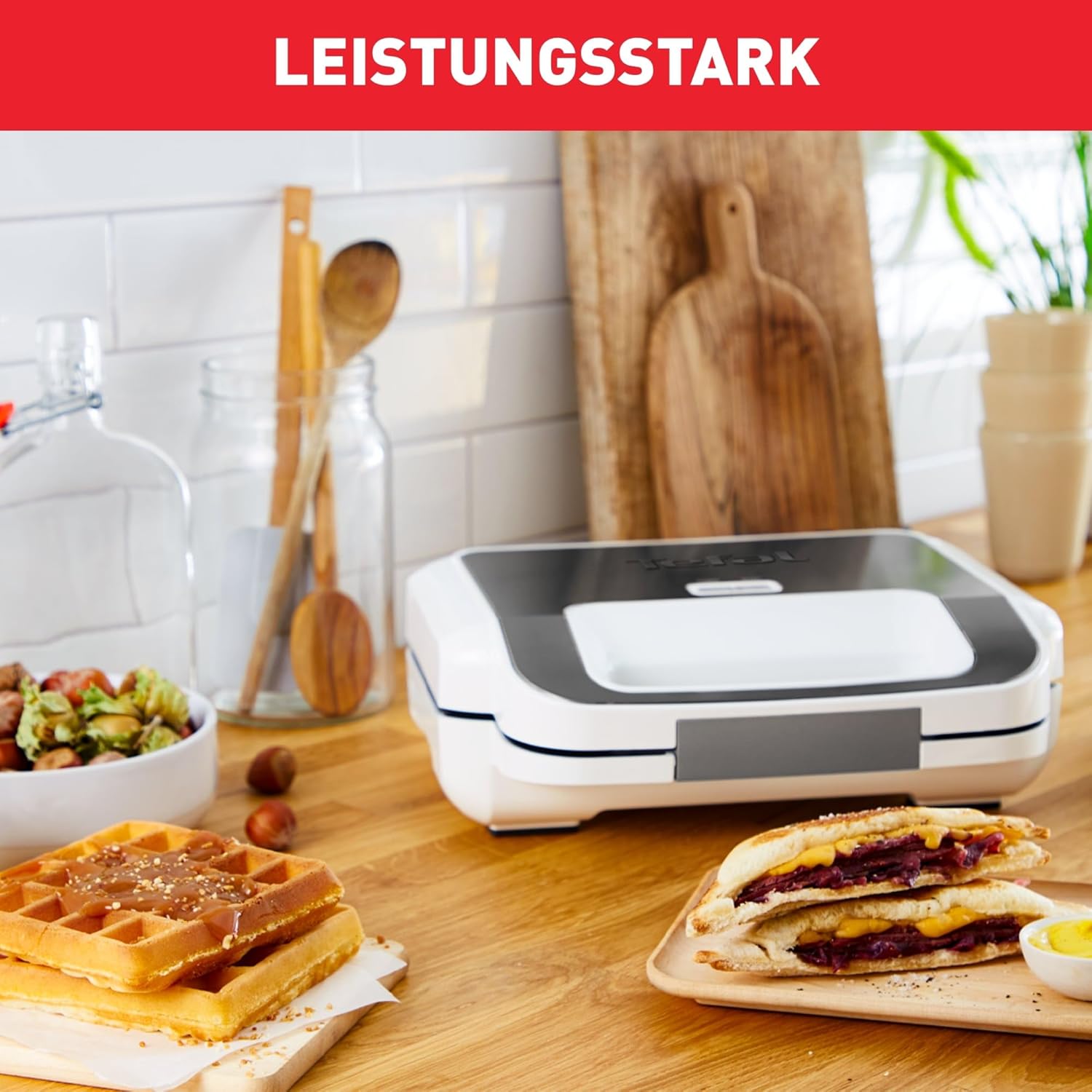 SNACK XL: Sandwichmaker und Waffelautomat mit extra tiefen und extragroßen Tellern für mehrstöckige Sandwiches, reich gefüllte Bagels oder extradicke, großzügige Waffeln ohne Gefahr des Überlaufens ALLE GRÖSSEN: perfekt für alle Brotsorten und für alle Größen, auch für Formate „große Scheiben“ MULTIFUNKTIONAL: 2 Sätze herausnehmbarer Teller, Waffeln und geröstete Sandwiches LEISTUNG: 850 W für schnelles Aufwärmen Reparaturfähigkeit: 15 Jahre, 2 Jahre Garantie EINFACH ZU BEDIENEN: Kontrollleuchte für das Vorwärmen PRAKTISCH: Vertikale Aufbewahrung, um Platz in Ihren Schränken zu sparen LEICHT ZU REINIGEN: herausnehmbare Teller mit Antihaftbeschichtung, spülmaschinengeeignet MITGELIEFERTES ZUBEHÖR: Waffelteller und Sandwichteller GRÖSSE DER PLATTEN: 26,8 x 13,7 cm | قیمت یورویی : 79.99€