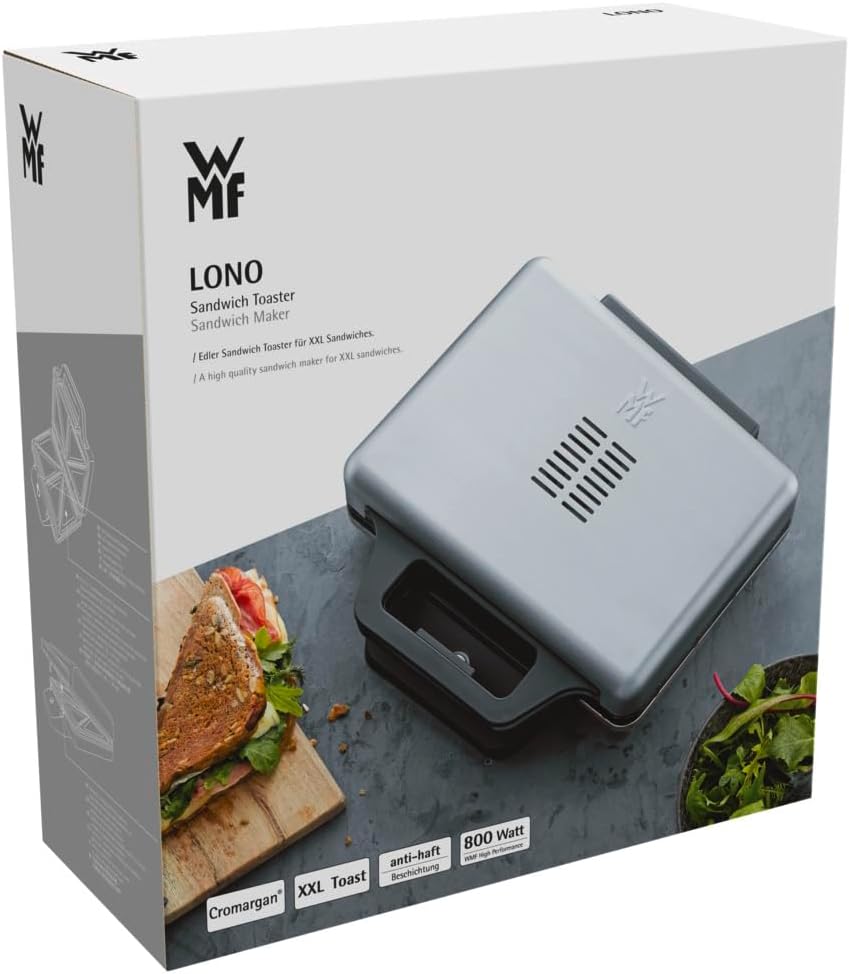 WMF Lono Sandwich Maker, Sandwichtoaster für 2 Standard- oder XXL-Toasts, Sandwichmaker, 2-stufige Höhenanpassung für mehr Füllung, edelstahl matt Single | قیمت یورویی 64.9€