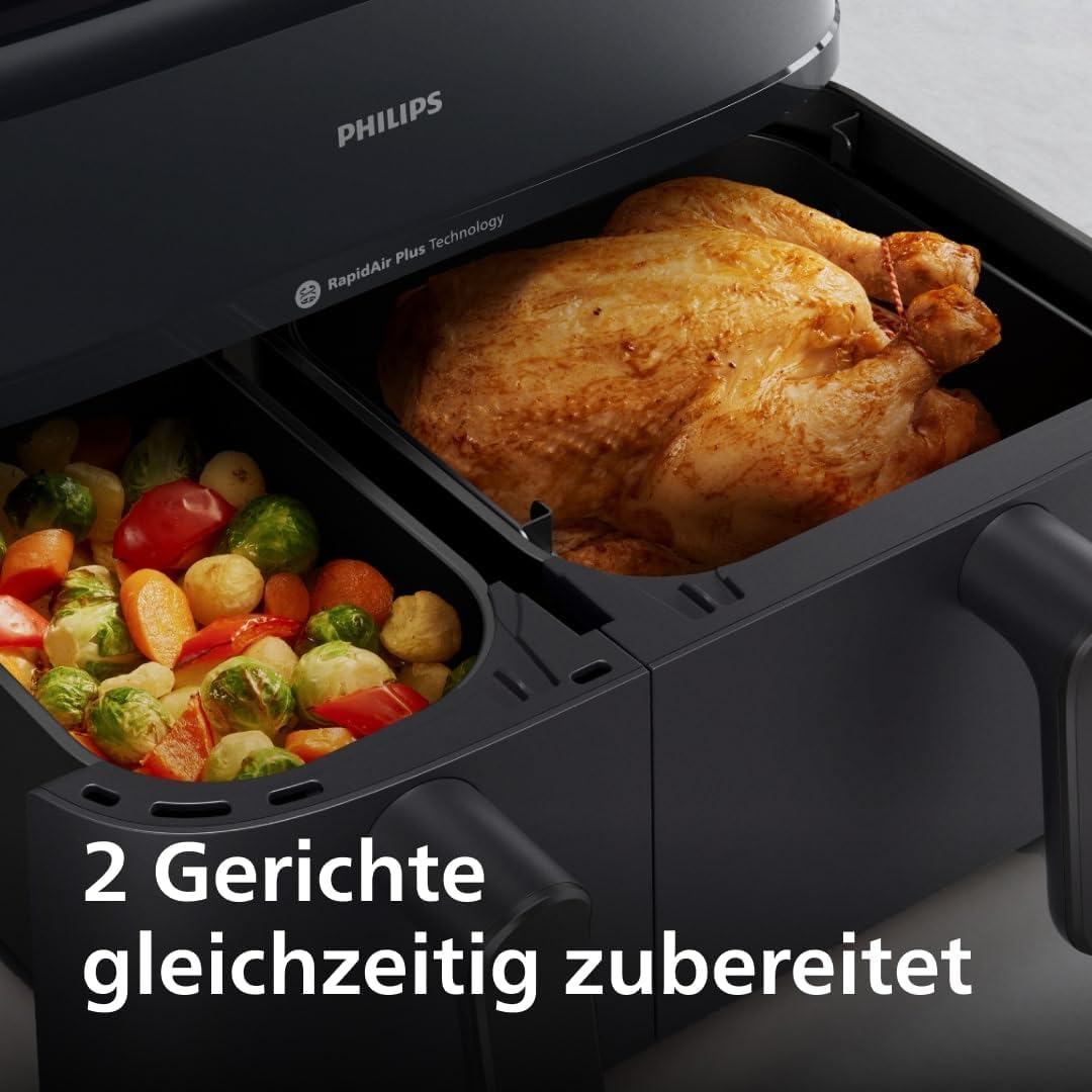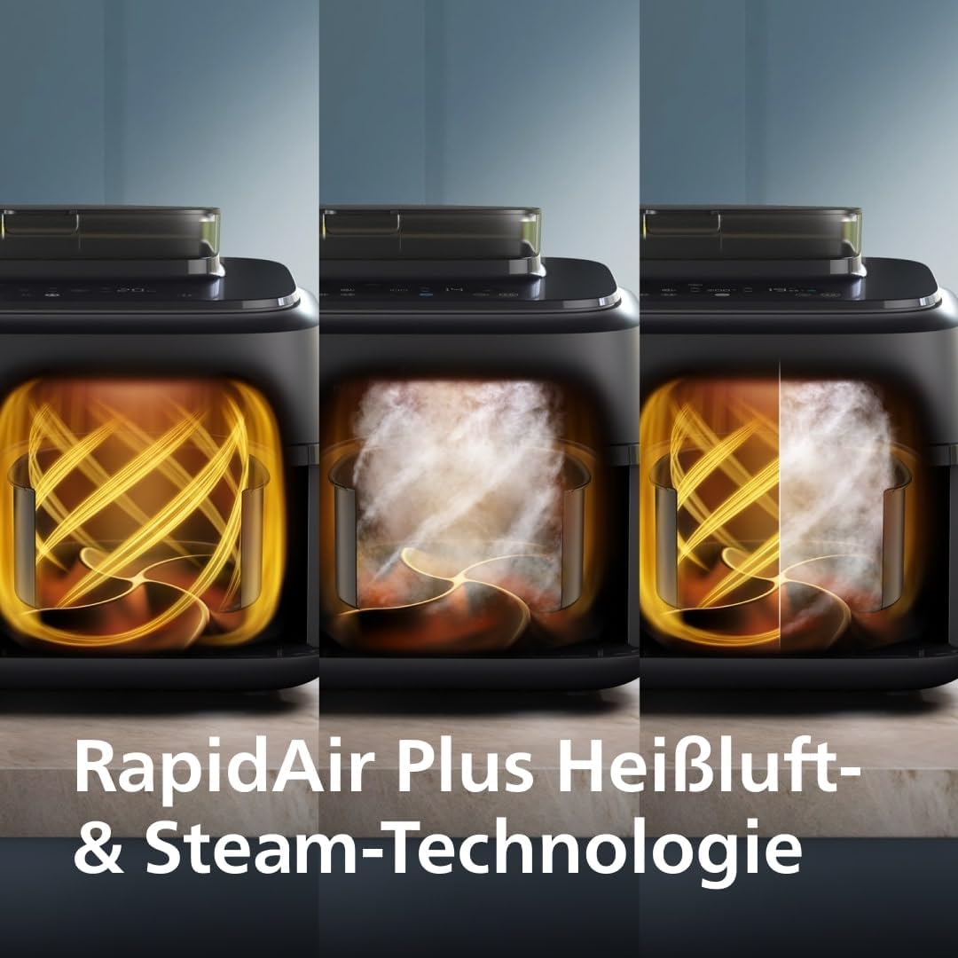 Philips Steam Airfryer 5000 Series Dual Basket - Airfryer & Dampfgarer in einem Gerät, 9L, RapidAir Plus Technologie, 19 Kochfunktionen, 90% weniger Fett, 2 Körbe, Dampfreinigung (NA550/00) | قیمت یورویی 259.99€