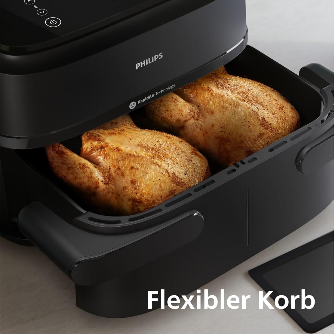 Philips Airfryer 1000 Series Flexible Basket - 7,1 L Fassungsvermögen, RapidAir-Technologie, 10 Kochfunktionen, 90% weniger Fett, kompaktes Design, HomeID-Rezept-App (NA154/00) | قیمت یورویی 149.99€