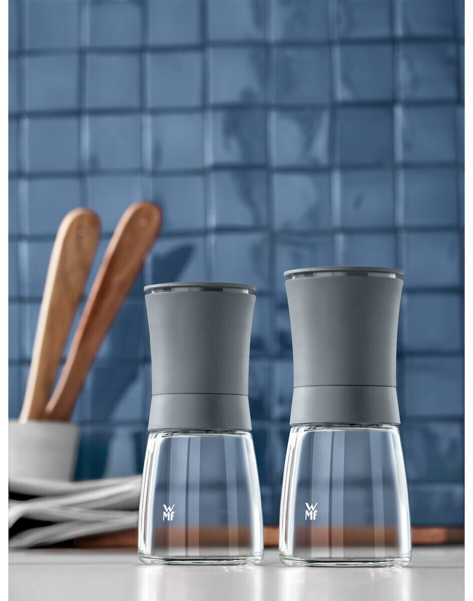 ست آسیاب WMF Ceramill Trend شامل دو آسیاب نمک و فلفل با بدنهای از ترکیب استیل ضدزنگ و شیشه مقاوم است. مکانیزم آسیاب سرامیکی Ceramill از دوام بالایی برخوردار بوده و در برابر سایش مقاوم است. همچنین، تنظیم اندازه آسیاب به دلخواه شما ممکن است. درب محافظ روی آسیاب از پخش شدن اضافی ادویه جلوگیری میکند و سطح میز را تمیز نگه میدارد.