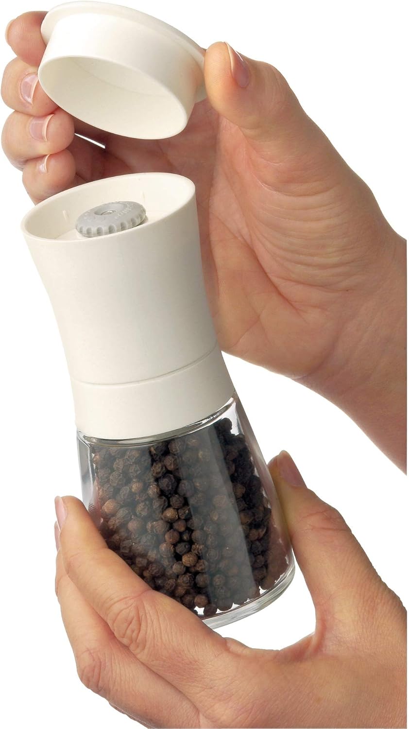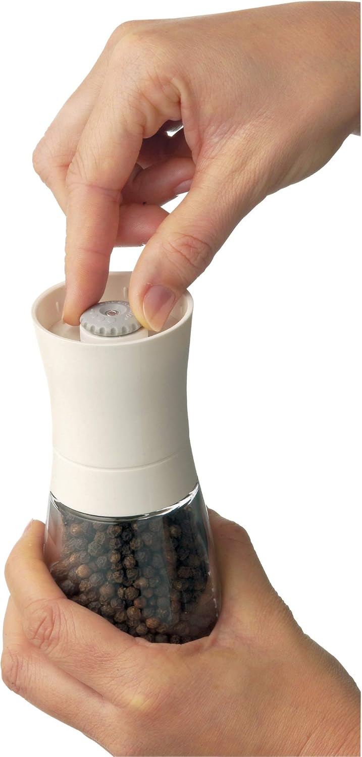 Inhalt: 2x Gewürzmühle unbefüllt (Höhe 14 cm, Ø 6/4,7 cm) ohne Beschriftung - Artikelnummer: 0648139990 Material: Kunststoff, Glas, Keramik-Mahlwerk - spülmaschinengeeignet (Glasbehälter), aromadicht verschließbar und hygienisch. Keinen Schmutz auf der Arbeitsfläche da die Mahl-Öffnung oben liegt Das Einstellrad ermöglicht die stufenlose Einstellung der Mahlstärke von grob bis fein. Bei jeder Drehung kommt das Mahlgut in gleichmäßiger Körnung heraus Keramikmahlwerk ist härter als Stahl, korrosions- und verschleißfrei. Es mahlt Pfeffer und Salzkörner, getrocknete Kräuter (Chillischoten) und Gewürze. Keramik ist lebensmittelneutral und abriebfrei Herstellergarantie: 10 Jahre auf das Keramikmahlwerk. Die Garantiebedingungen finden Sie unter „Weitere technische Informationen“ | قیمت یورویی : 29.99€