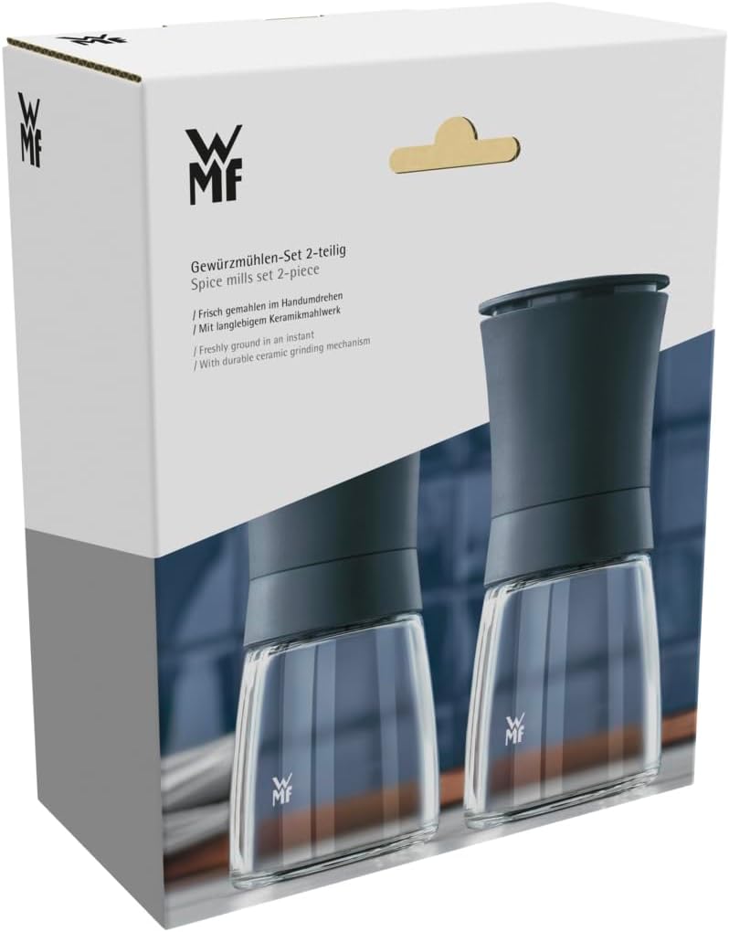 WMF Trend Mühlenset 2tlg, Salz- und Pfeffermühle unbefüllt, Glasbehälter, Keramikmahlwerk, Mühle für Salz und Pfeffer, Gewürze, spülmaschinengeeignet, grau 14 cm | قیمت یورویی 19.99€