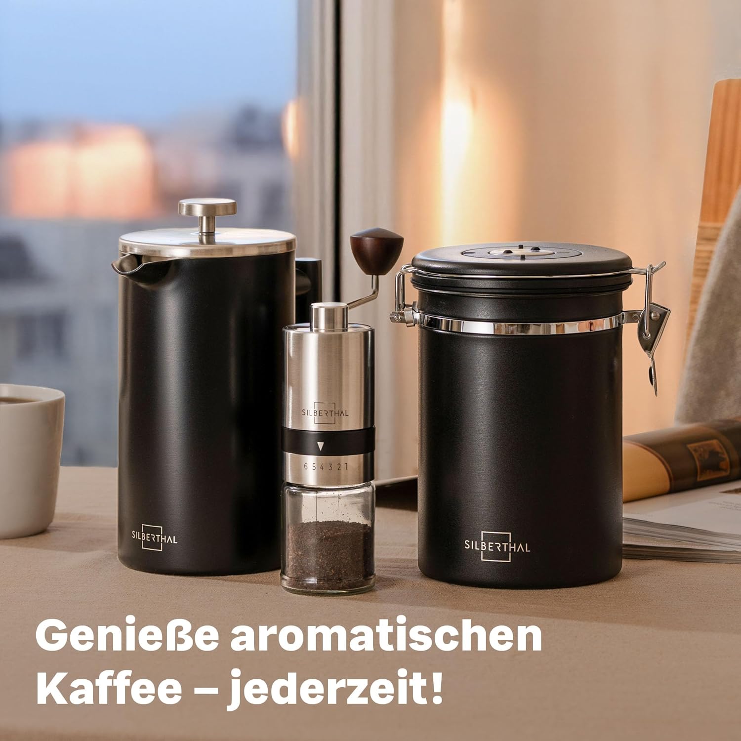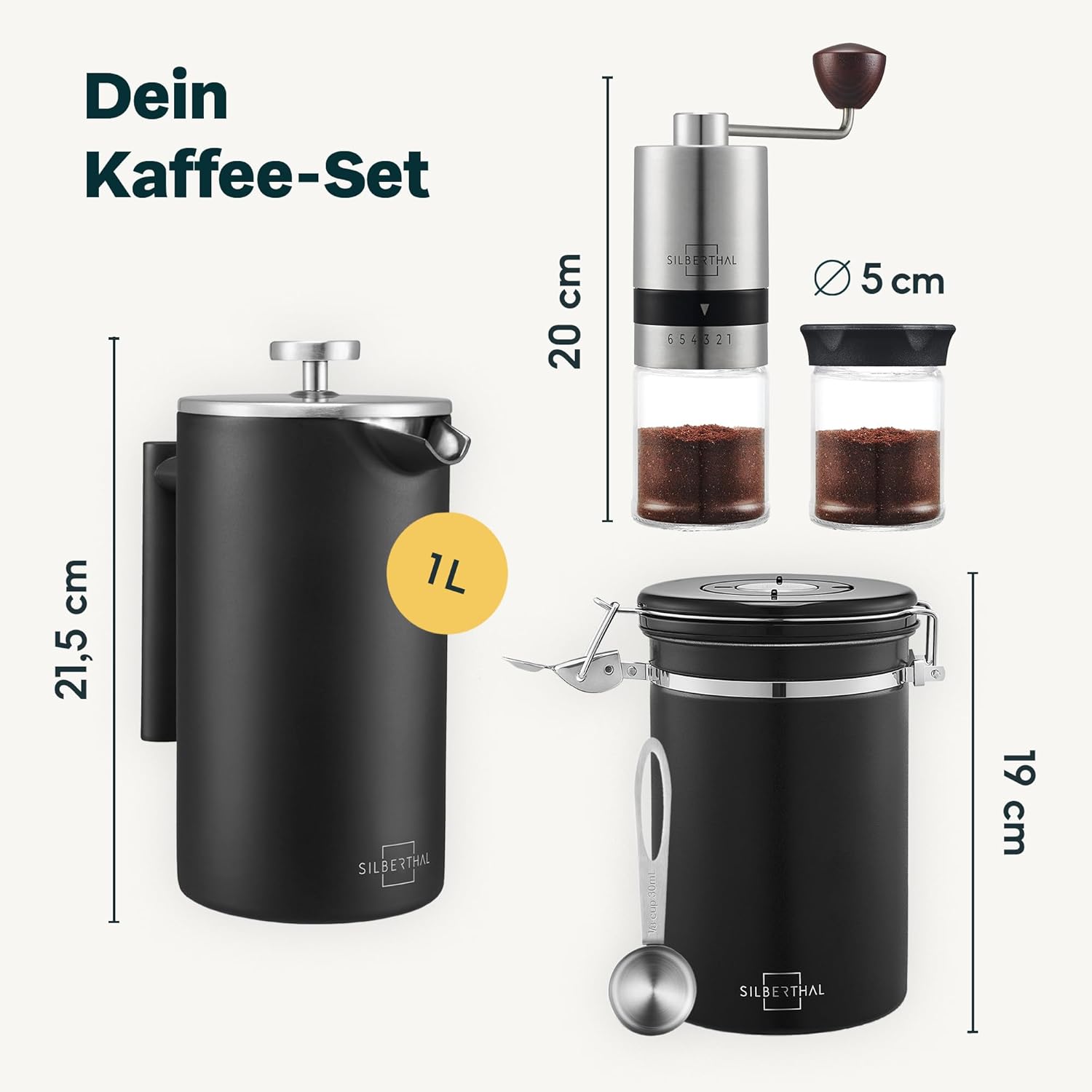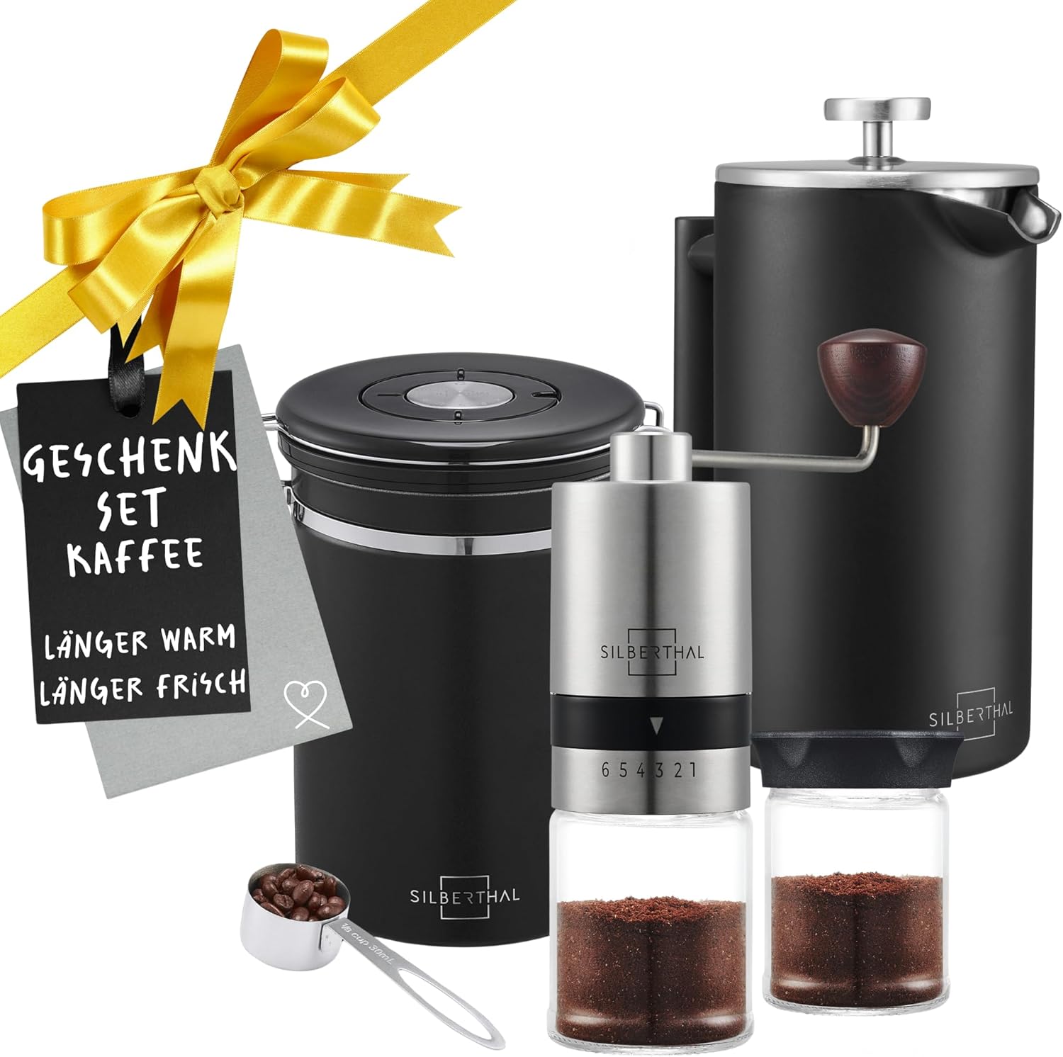 SILBERTHAL Kaffeemühle French Press Set - manuelle Handmühle mit Thermo Kaffeepresse 1l - Verstellbarer Mahlgrad - Edelstahl und Glas - Geschenkset für Kaffeeliebhaber und Vieltrinker Kaffeemühle mit French Press Set | قیمت یورویی 104.95€
