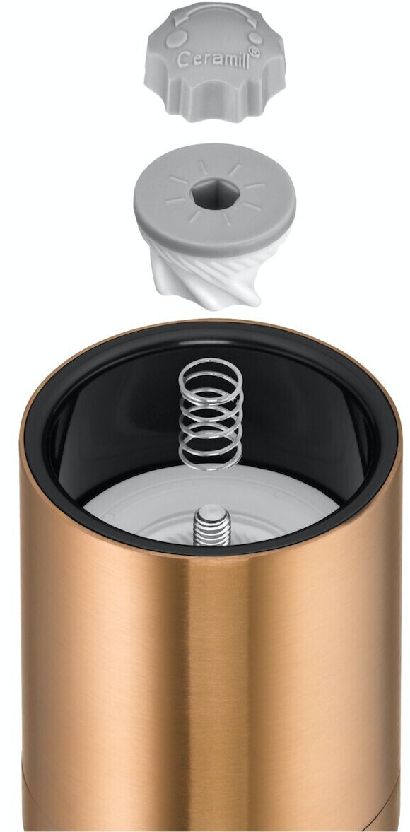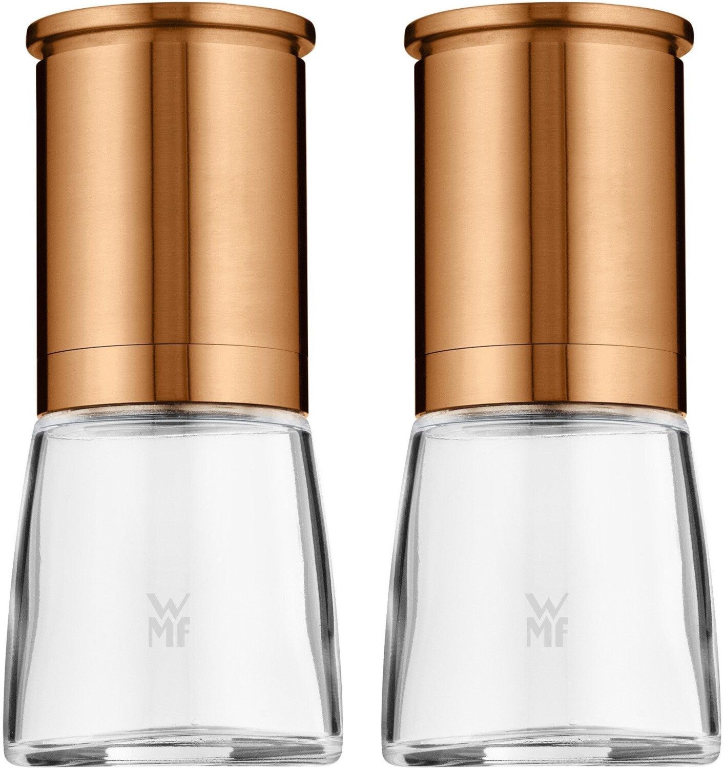 ست آسیاب WMF De Luxe شامل ۲ آسیاب نمک و فلفل با طراحی مدرن و بدنهای از جنس استیل ضدزنگ با روکش مسی براق است.