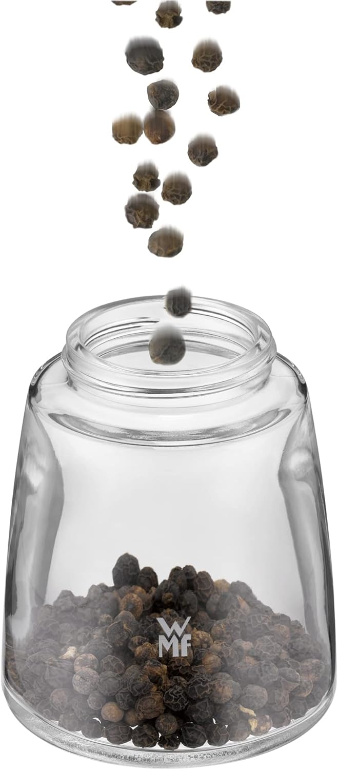 ست آسیاب نمک و فلفل WMF De Luxe، 3 تکه، توکار، استیل ضد زنگ Cromargan®، روکش مات، شیشه، تنظیم آسیاب بدون پله، مکانیزم آسیاب سرامیکی، آسیاب نمک، فلفل، ادویه، 3 تکه، شفاف