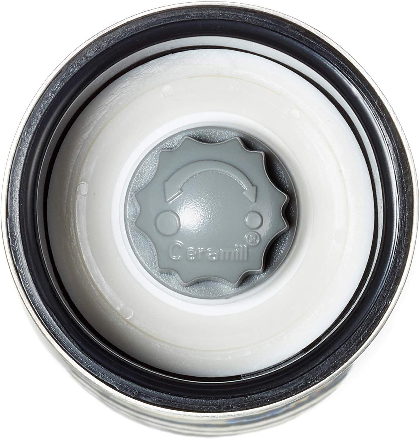Inhalt: 1x Salzmühle befüllt mit Aufdruck (50 g Salz), 1x Pfeffermühle befüllt mit Aufdruck (27 g), 1x Gewürzmühle unbefüllt ohne Aufdruck (Höhe 14 cm, Ø 6 cm) - Artikelnummer: 0667949990 Material: Cromargan Edelstahl matt, Glas, Keramik-Mahlwerk - spülmaschinengeeignet (Glasbehälter), aromadicht verschließbar, hygienisch, Keinen Schmutz da die Mahl-Öffnung oben liegt Das Einstellrad ermöglicht die stufenlose Einstellung der Mahlstärke von grob bis fein, Bei jeder Drehung kommt das Mahlgut in gleichmäßiger Körnung heraus Keramikmahlwerk ist härter als Stahl, korrosions- und verschleißfrei, Es mahlt Pfeffer und Salzkörner, getrocknete Kräuter und Gewürze, Keramik ist lebensmittelneutral und abriebfrei | قیمت یورویی : 47.99€