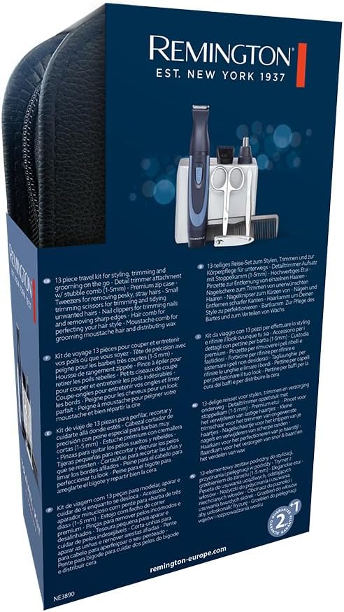 Remington Reiseset Hygiene im Etui [13-teilig: für Haare & Maniküre/Pediküre etc.] Bartschneider, Nasenhaartrimmer, Ohren-& Augenbrauentrimmer, Nagelklipper & Schere, Pinzette, 2 Kämme etc. NE3890 Haarschneidemaschine inkl. Reiseset | قیمت یورویی 12.97€