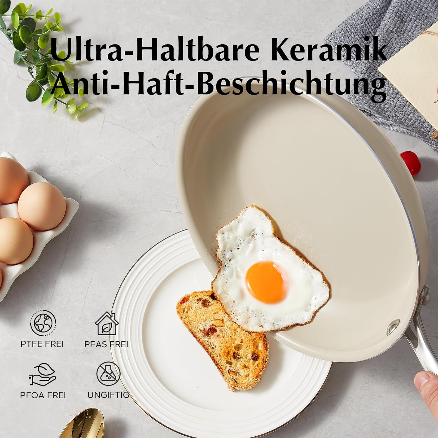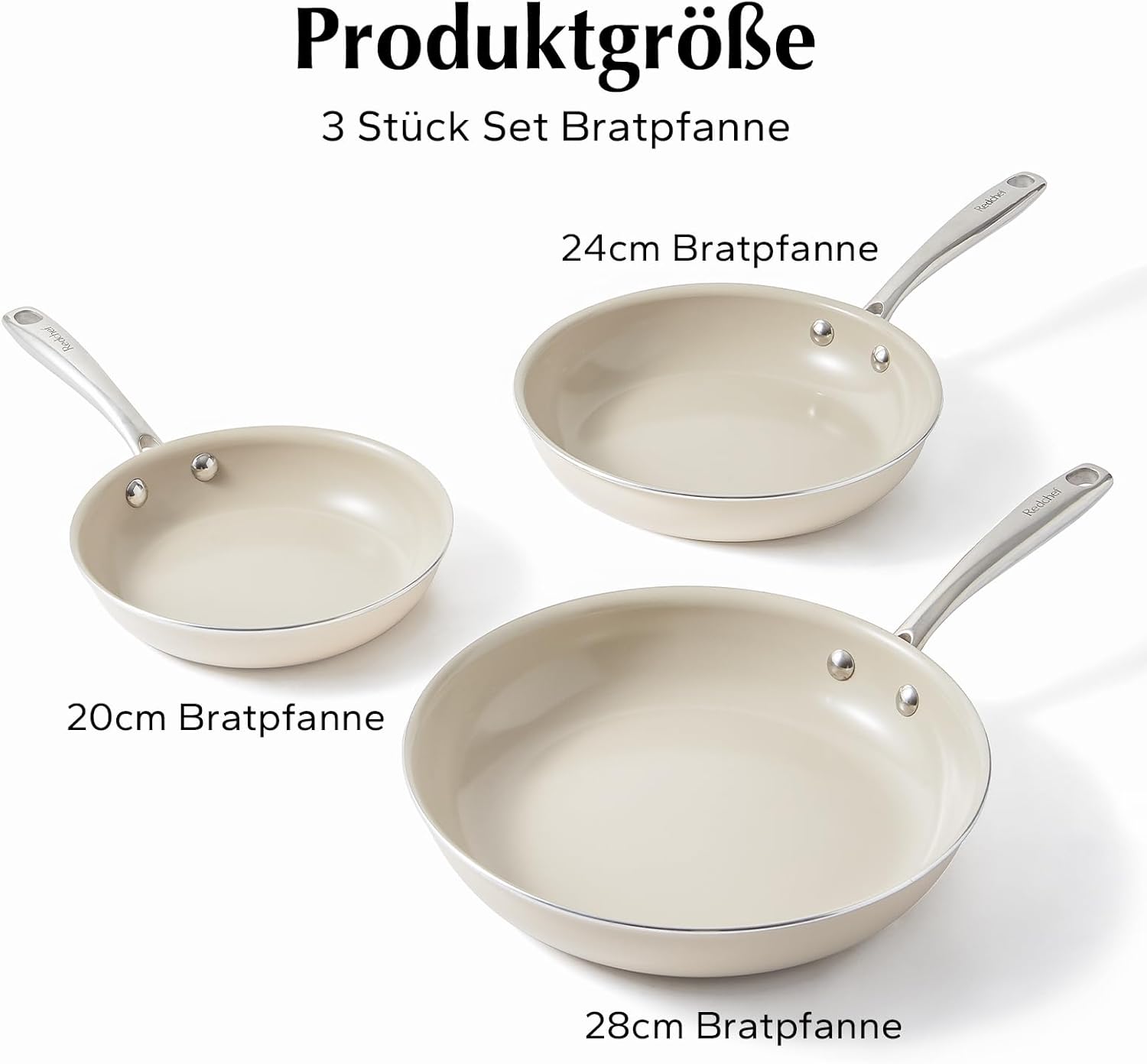 Redchef Pfannenset Keramik Induktion, Antihaft Bratpfannen 20/24/28 cm für alle Herdarten, PTFE-frei PFAS-frei PFOA-frei, Induktionsgeeignet, Backofenfest, Spülmaschinenfest (Beige) | قیمت یورویی 59.27€