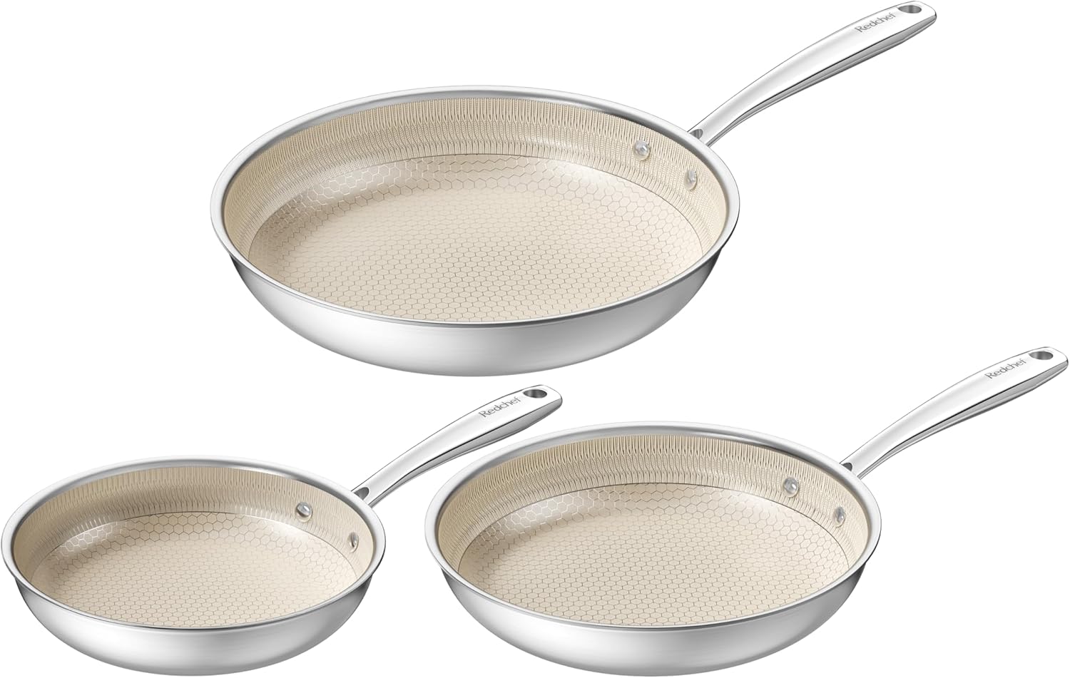 ست تابه ردشف ساختار لانه زنبوری سرامیکی 3 تکه، ماهیتابه 24، 20، 28 سانتی متری، تابه القایی استیل ضد زنگ، ست ماهیتابه بدون PFAS بدون PFOA، ماشین ظرفشویی قابل شستشو در فر