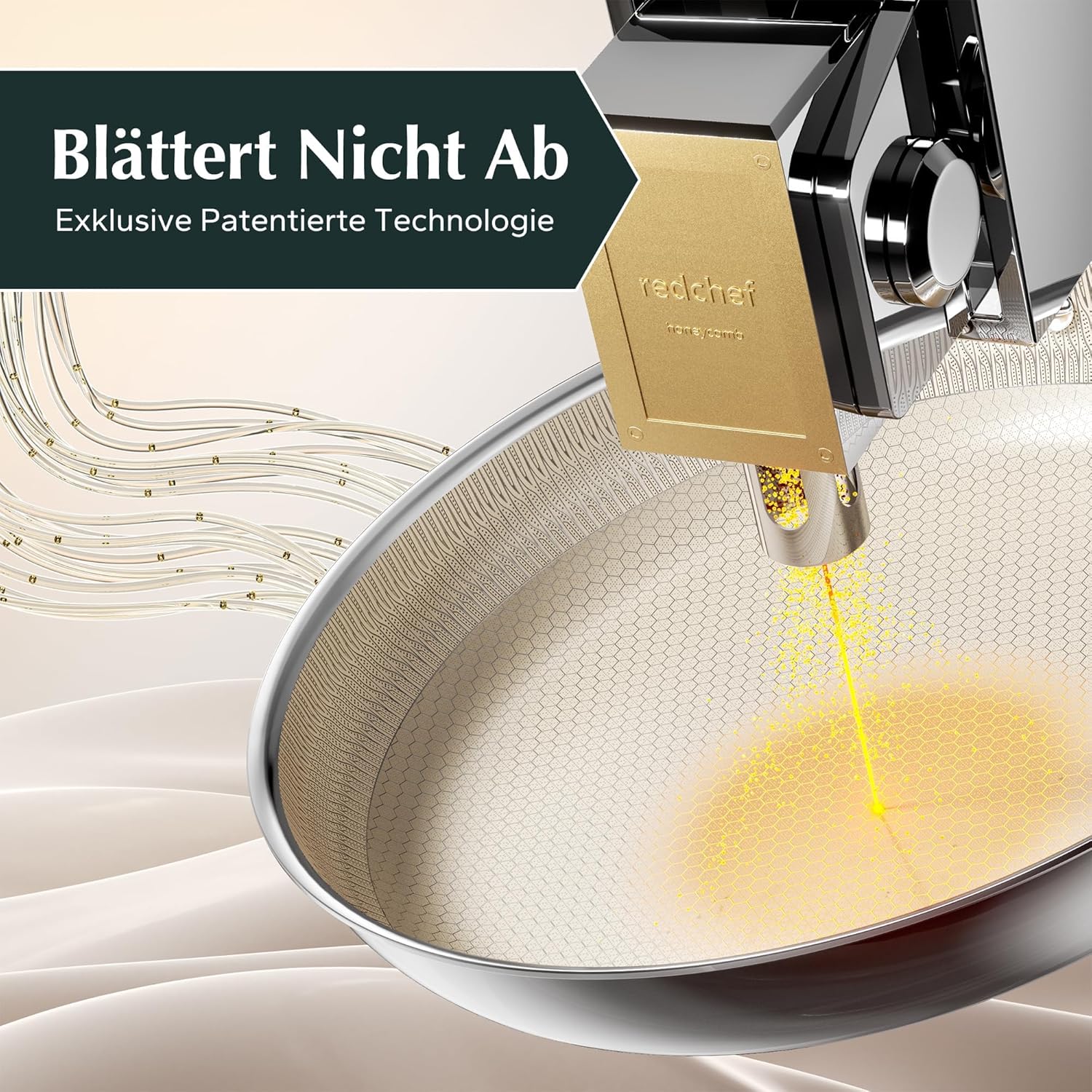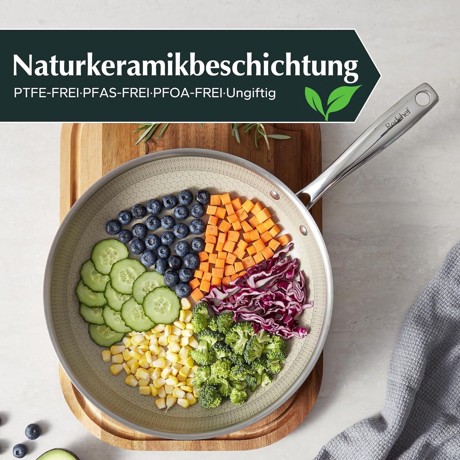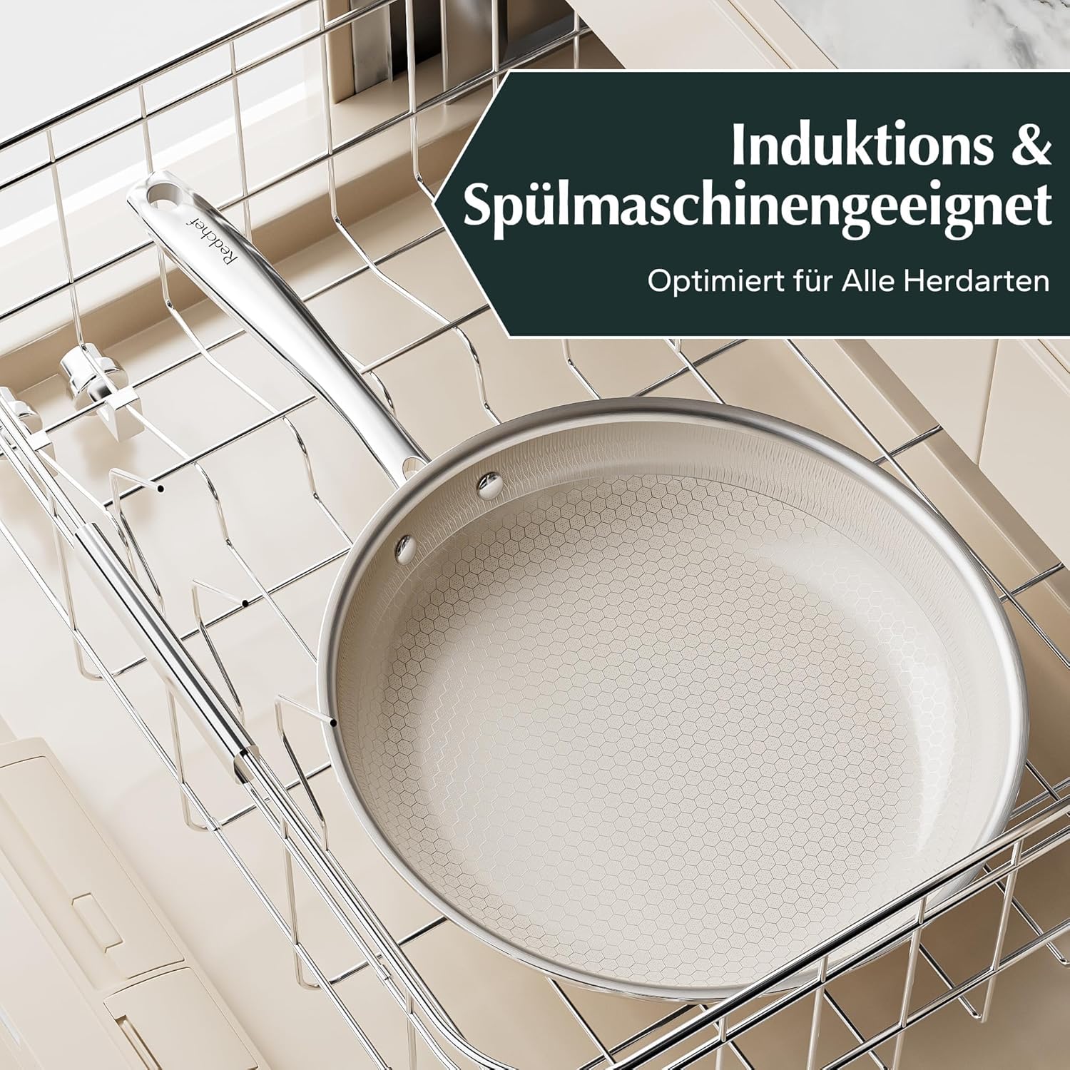 Redchef Pfannenset Wabenstruktur Keramik 3-teilig, Bratpfanne 24, 20, 28 cm, Edelstahlpfanne Induktion, PTFE Frei PFAS Frei PFOA Frei Pfannen Set, Backofenfest Spülmaschinen | قیمت یورویی 89.99€