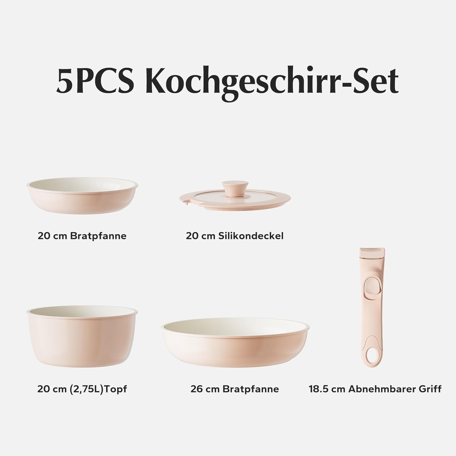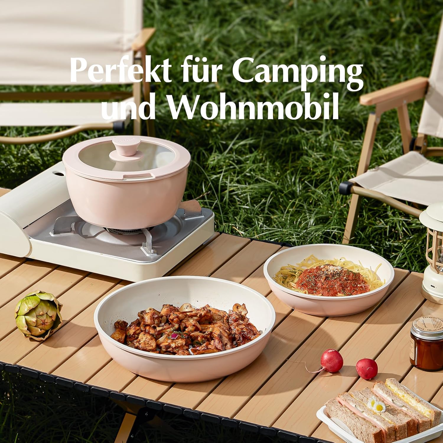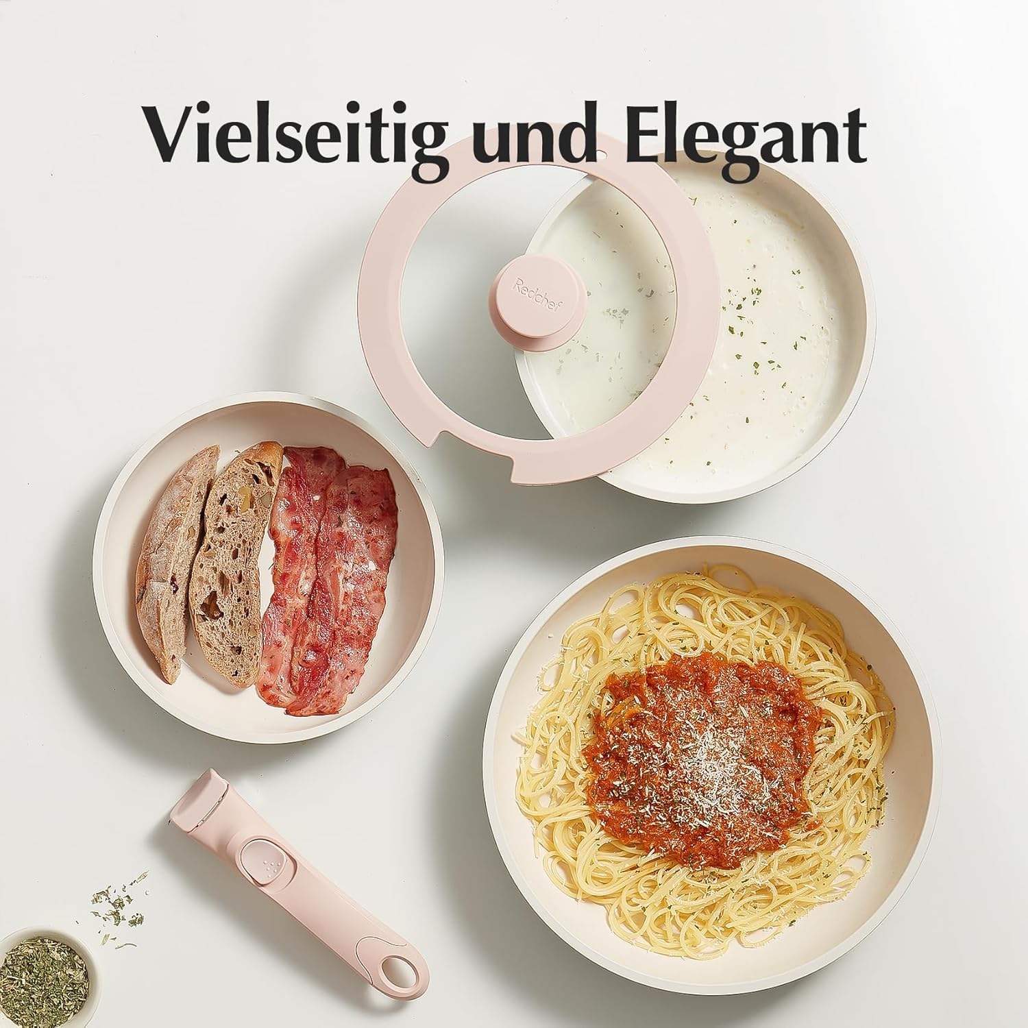 Redchef Pfannenset Keramik mit Abnehmbaren Griff, Wohnmobil Kochgeschirr Set für Camping, Keramik Ungiftiges Topf, PTFE-frei PFAS-frei PFOA-frei, Platzsparend, Spülmaschinenfest, Rosa | قیمت یورویی 59.99€