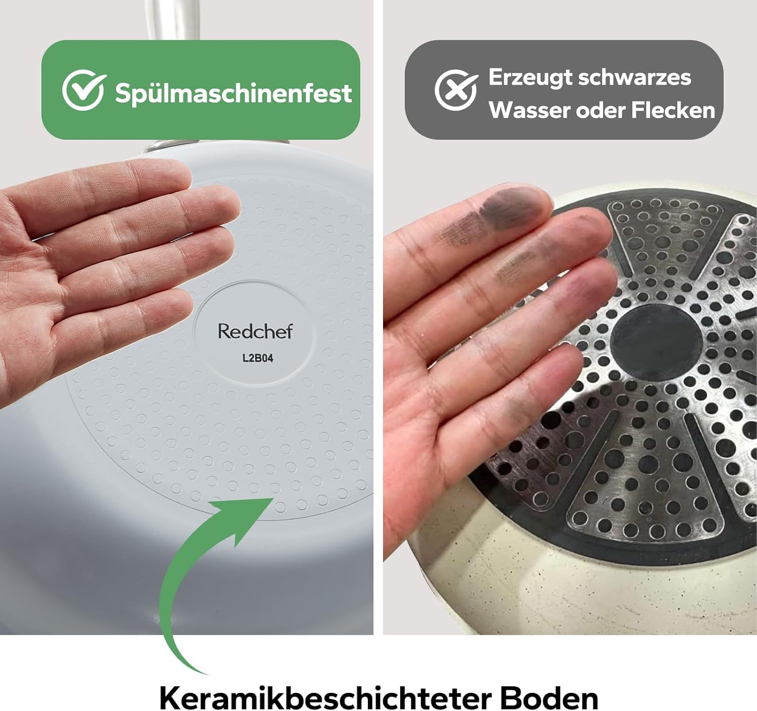 Redchef Keramikpfanne Set ohne Teflon, Pfannenset Induktion, Keramikpfanne ohne ptfe und pfoa 20/24/28 cm Ceramic Pfanne für Alle Herdarten Backofenfest, Spülmaschinenfest (Grau) | قیمت یورویی 69.99€