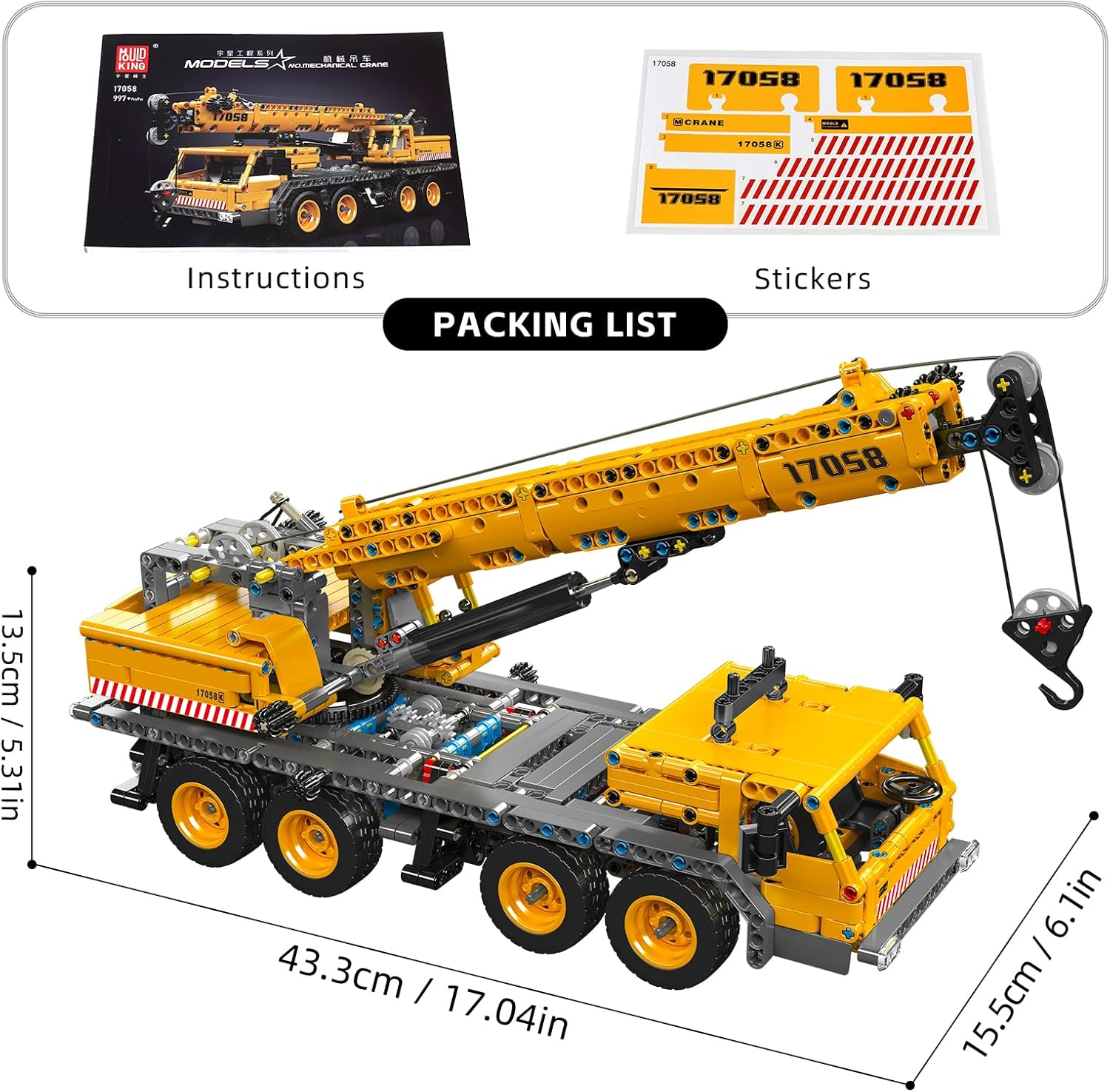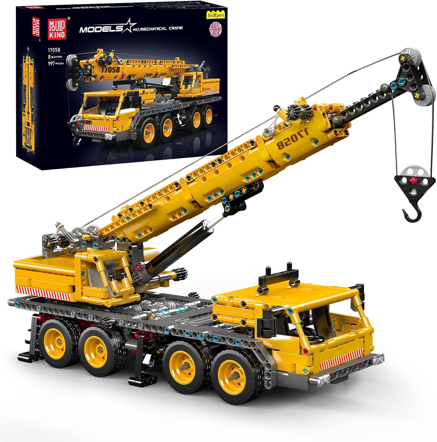 ست ساخت و ساز کامیون جرثقیل تکنیکی Mold King 17058، ست اسباب بازی 997 تکه با جرثقیل و کامیون، هدیه تولد برای دختران و پسران 14 سال به بالا، خودروی ساختمانی برای کودکان (نسخه استاتیک)