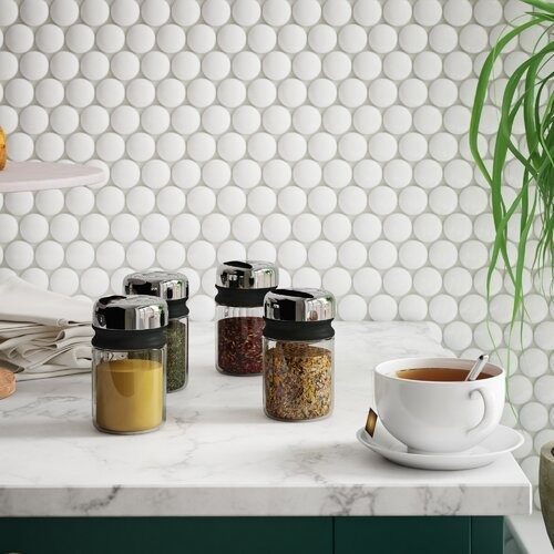 ست جاادویه WMF Gewürzstreuer Depot 4er-Set شامل ۴ عدد شیشه ادویه شفاف با بدنه استیل Cromargan® است که هم زیباست و هم مقاوم در برابر زنگزدگی و اثر انگشت. درب این جاادویهها دارای سیستم چرخشی چندحالته (ریز، درشت و بسته) برای تنظیم میزان پاشش است. طراحی این محصول کاملاً مناسب استفاده روزمره و همچنین میز پذیرایی مهمان است.