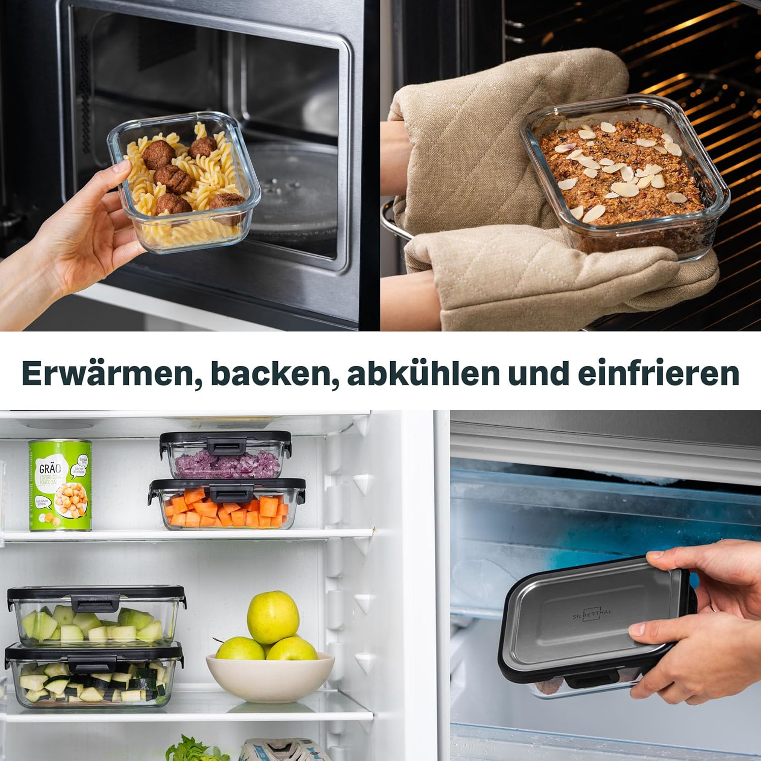 SILBERTHAL Frischhaltedosen Set Glas mit Edelstahl Deckel - Luftdicht - 3er Set - Größen 1L, 600ml und 400ml | قیمت یورویی 39.95€