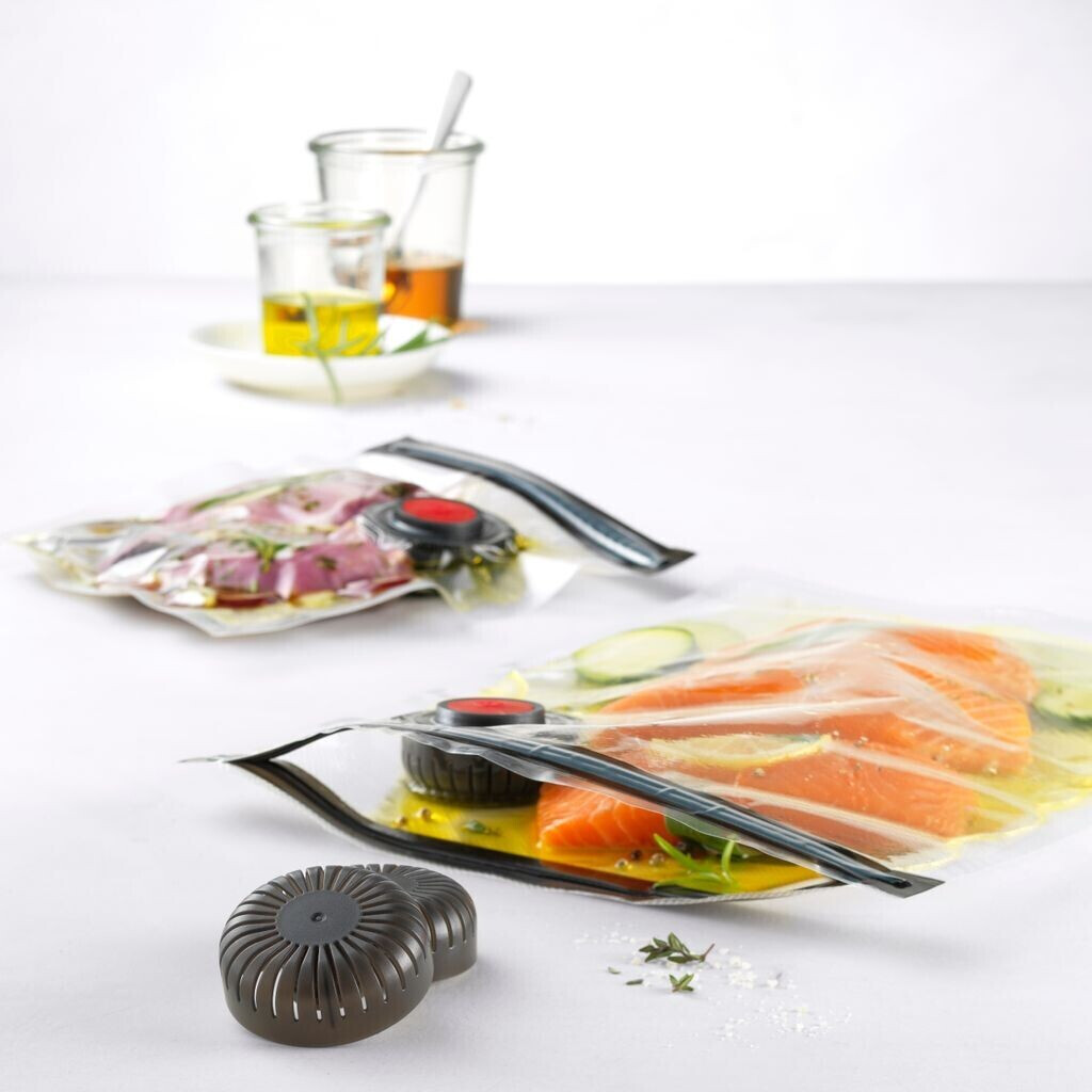 ست ظروف وکیوم زولینگ مدل ZWILLING Fresh & Save یک مجموعه ایدهآل برای نگهداری مواد غذایی با حفظ تازگی و کیفیت آنها است. فناوری وکیوم این ظروف، مانع از اکسید شدن غذا شده و ماندگاری آن را افزایش میدهد. ظروف پلاستیکی مقاوم و سبک این مجموعه، امکان استفاده در یخچال، فریزر و مایکروویو را فراهم کردهاند. دربهای مخصوص وکیوم مانع از ورود هوا و نشت مایعات میشوند. ابعاد مختلف ظروف (S/M) باعث شده این ست برای نگهداری انواع مواد غذایی، از میوه و سبزیجات تا وعدههای غذایی کوچک، مناسب باشد.