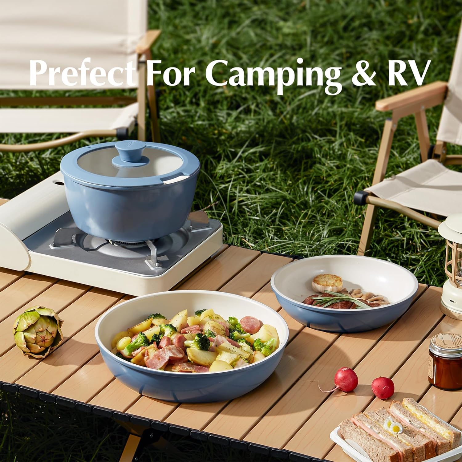 16-teiliges Keramik-Topf- und Pfannenset, antihaftbeschichtet, Küchen-Kochgeschirr-Set mit abnehmbarem Griff, ungiftig, PFAS PFOA- und PTFE-frei, Wohnmobil-Keramik-Kochgeschirr-Set für Camping, | قیمت یورویی 167.81€