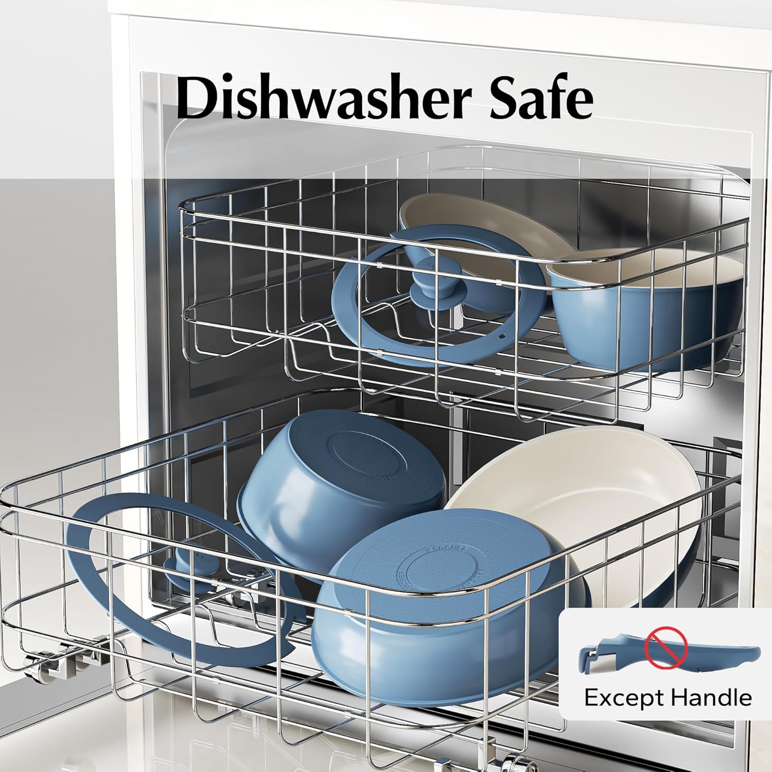 ست قابلمه و تابه سرامیکی 16 تکه، ست ظروف آشپزخانه نچسب با دسته قابل جابجایی، غیر سمی، بدون PFAS PFOA و PTFE، ست ظروف سرامیکی RV برای کمپینگ،