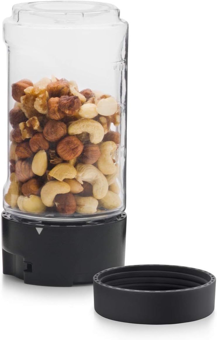Inhalt: 1x Mixbhälter 300 ml, 1x Messerbaugruppe - Flachklinge, 1x Verschlussdeckel - Artikelnummer: 0416990071 Trinkflasche / Mixbehälter (300 ml) mit Skala aus TRITAN-Kunststoff - spülmaschinengeeignet Die Flachklinge ist ausschließlich für den Kult X Mix & Go (Artikelnummer: 04 1627 0011/ 04 1641 0011) oder KÜCHENminis Smoothie-to-go (04 1650 0011) geeignet Der Verschlussdeckel mit Silikonring schließt den Mixbehälter dicht und macht ihn dadruch transportabel. Der Deckel und die Messereinheit passen auch auf den 600ml-Mixbehälter Mit der Flachklinge können feste und trockene Zutaten, wie Nüsse, Kaffeebohnen, Pfeffer oder getrocknetes Obst/ Gemüse, gehackt, gemahlen oder pulverisiert werden | قیمت یورویی : 21.29€