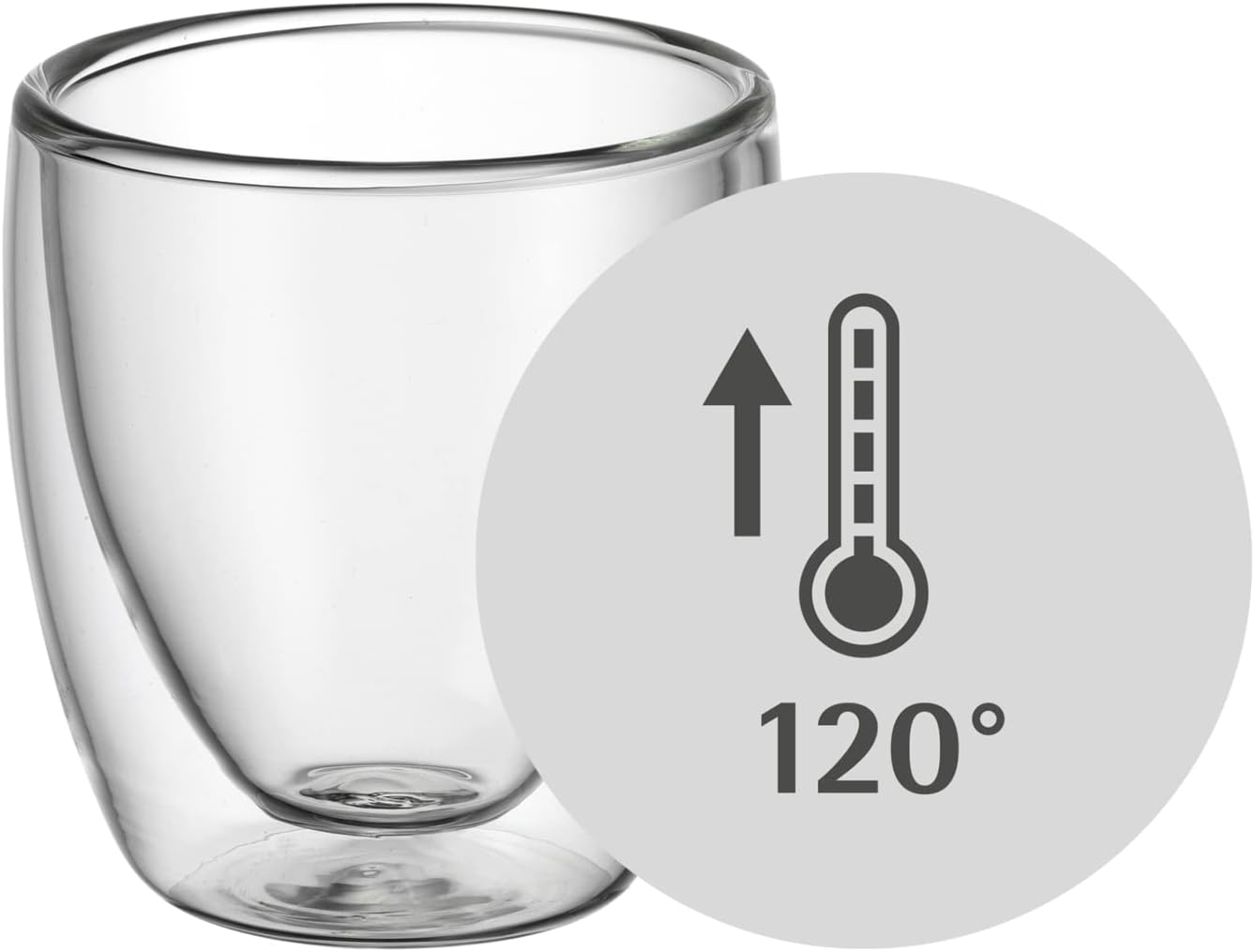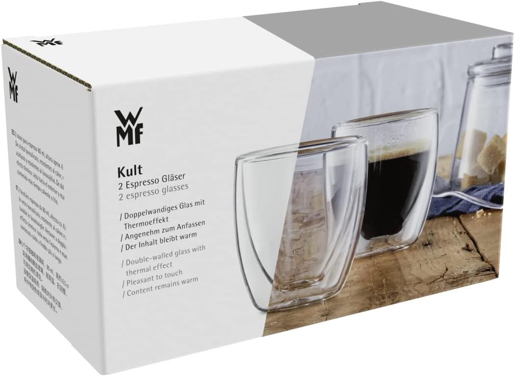 WMF Kult doppelwandige Espressotassen Glas Set 2-teilig, doppelwandige Gläser 80ml, Schwebeeffekt, Thermogläser, hitzebeständiges Espresso Glas 2 Stück (1er Pack) Single | قیمت یورویی 12.99€
