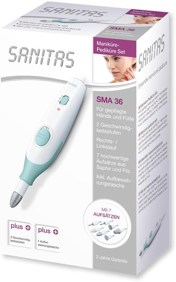Sanitas SMA 36 Maniküre/Pediküre Set, für gepflegte Hände und Füße, 7 hochwertige Aufsätze | قیمت یورویی 34.99€