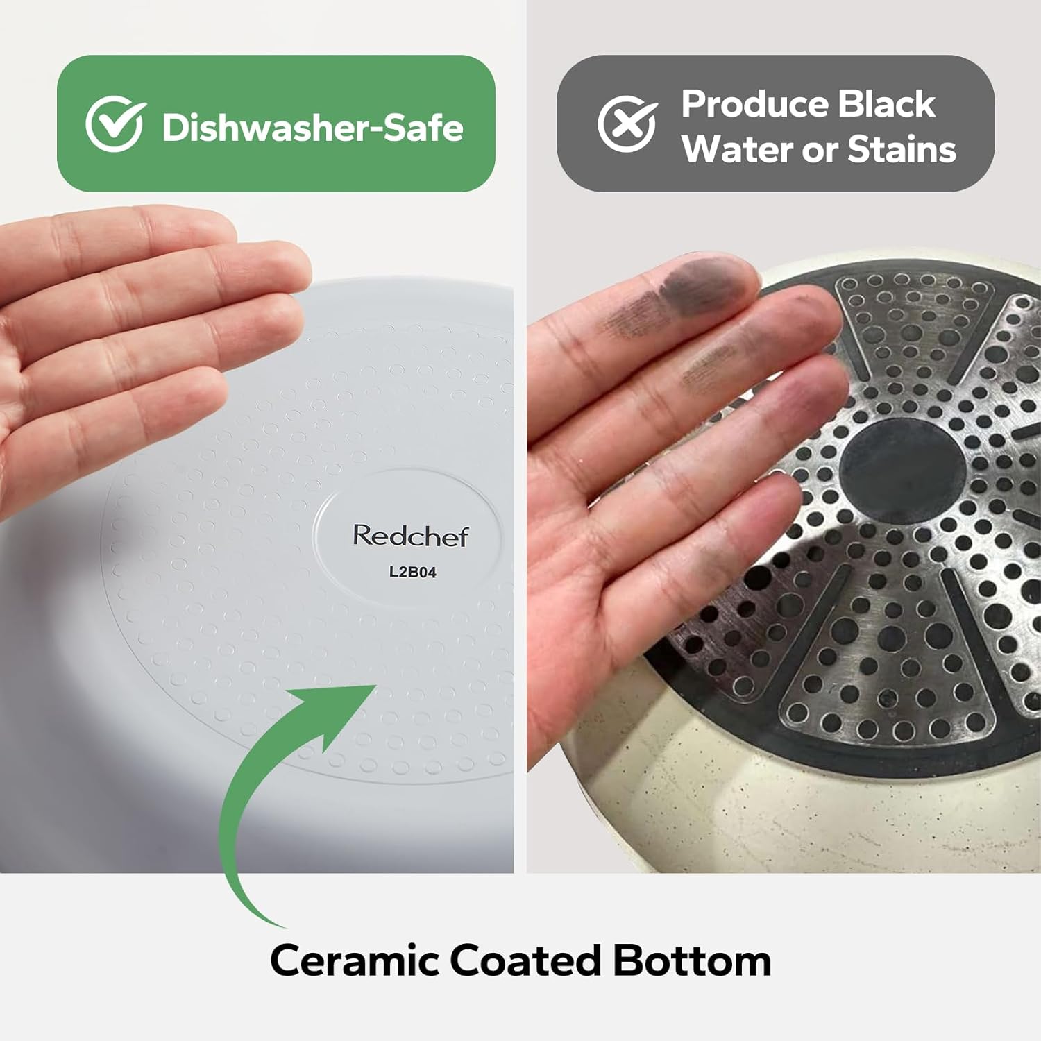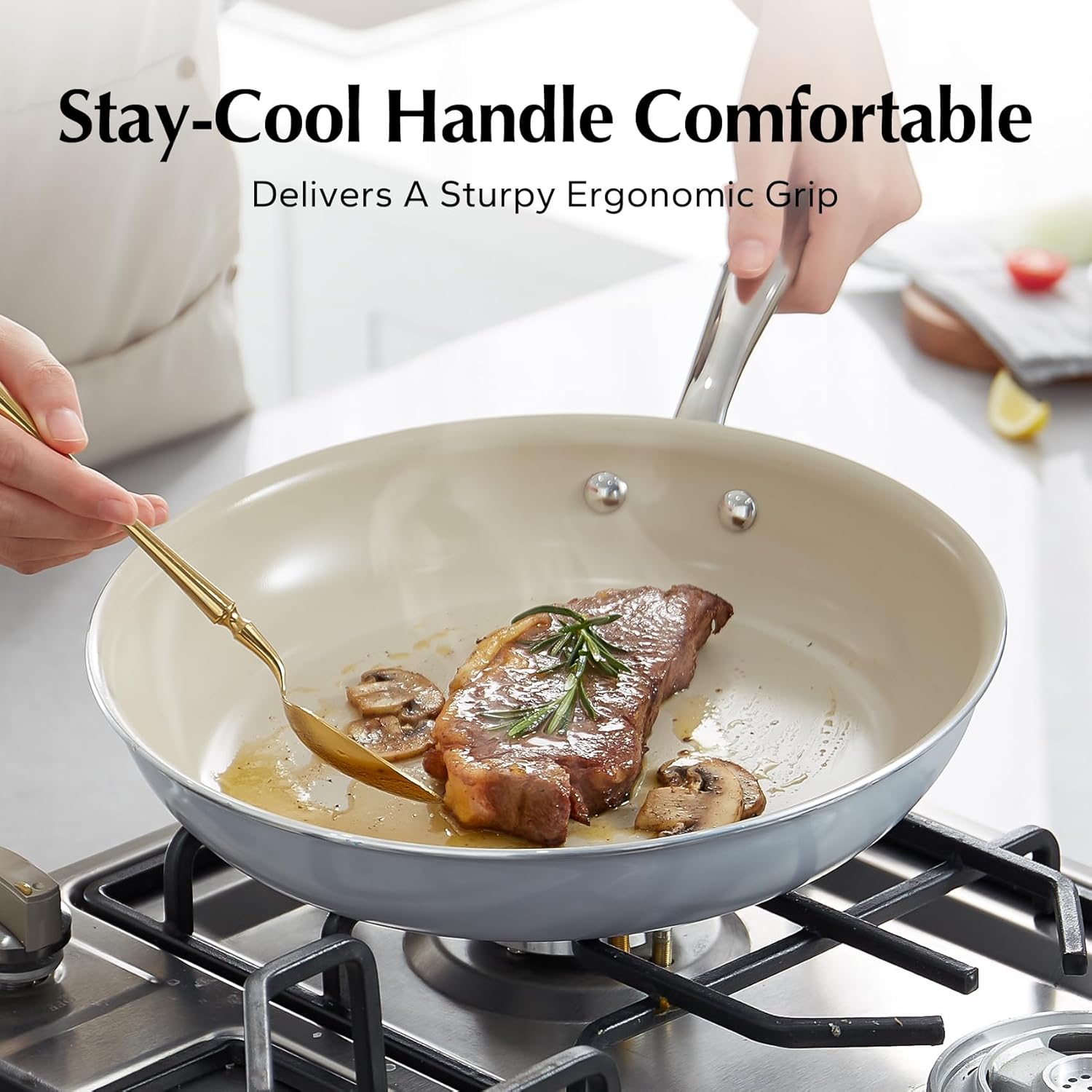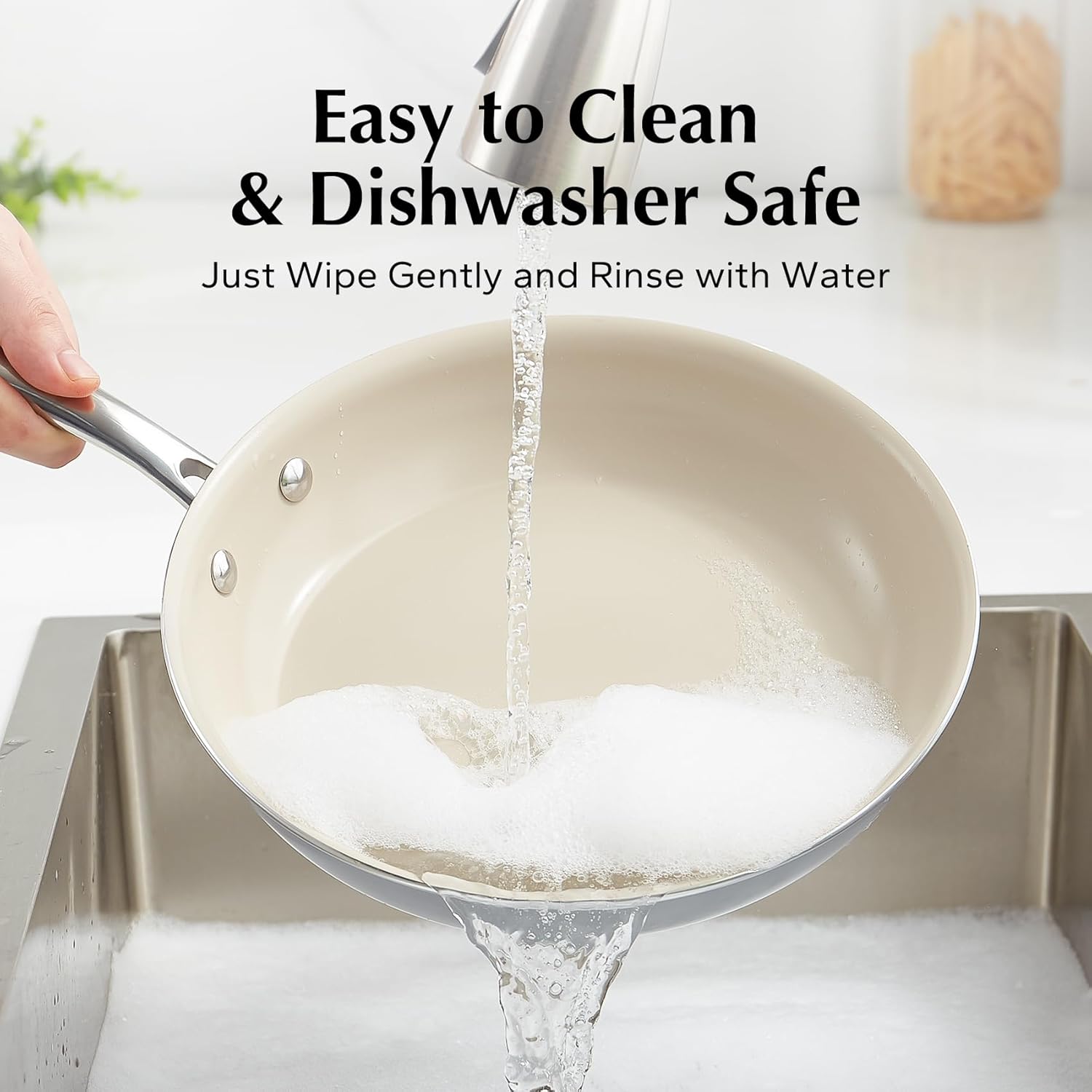 ست ماهیتابه سرامیکی نچسب Redchef، ماهیتابه سرامیکی غیر سمی برای پخت و پز، 8 اینچ 9.5 اینچی، ست ماهیتابه 11 اینچی، بدون PFAS و PTFE و PFOA با دسته استیل ضد زنگ، قابل شستشو در ماشین ظرفشویی/فر، حداکثر 450