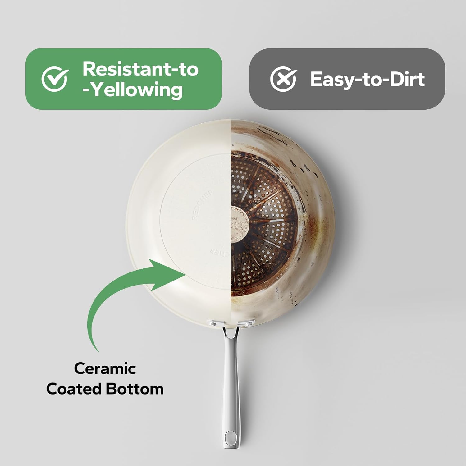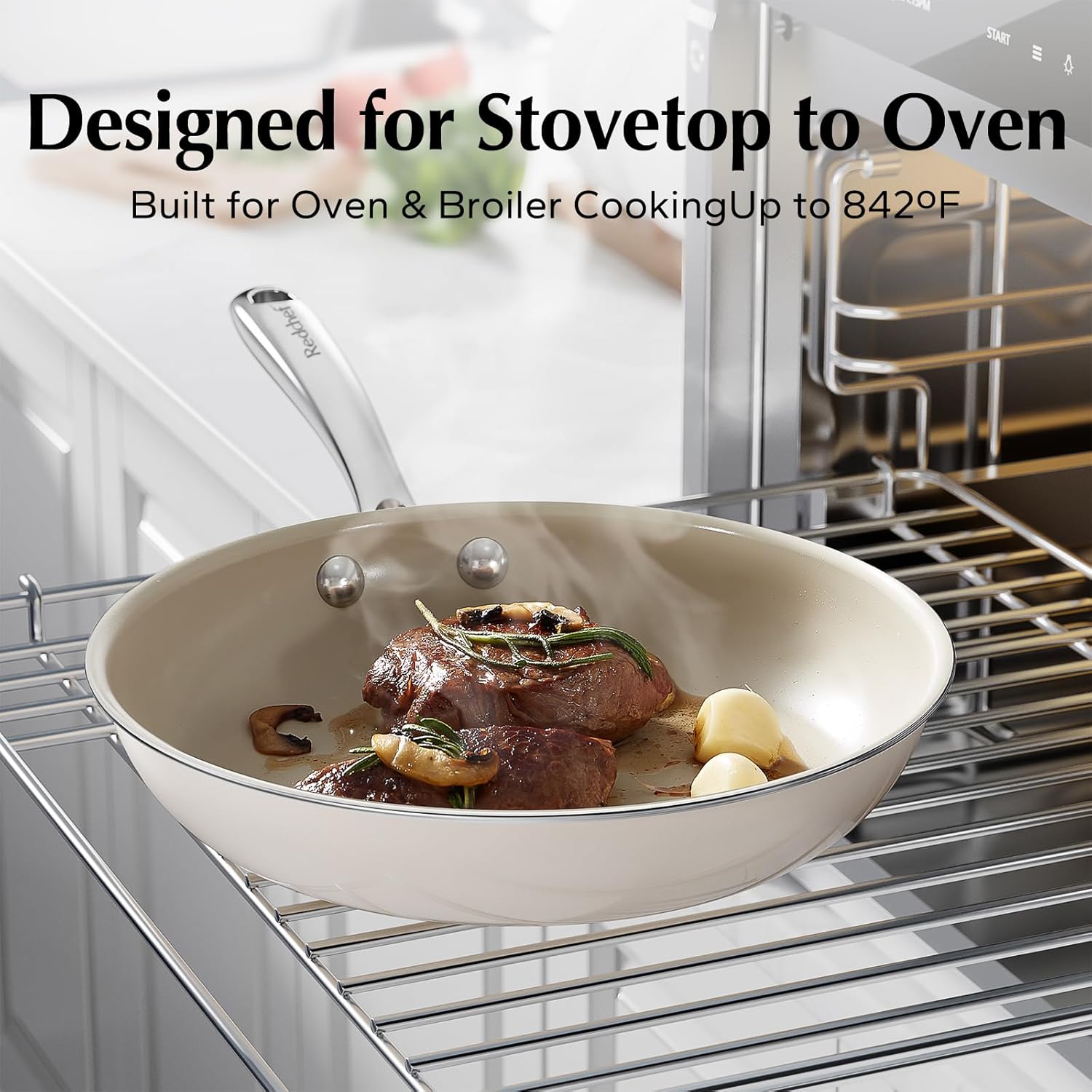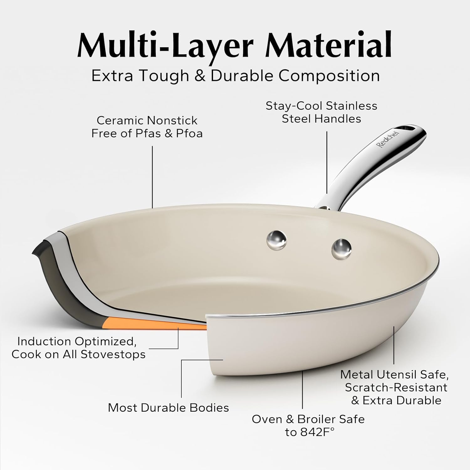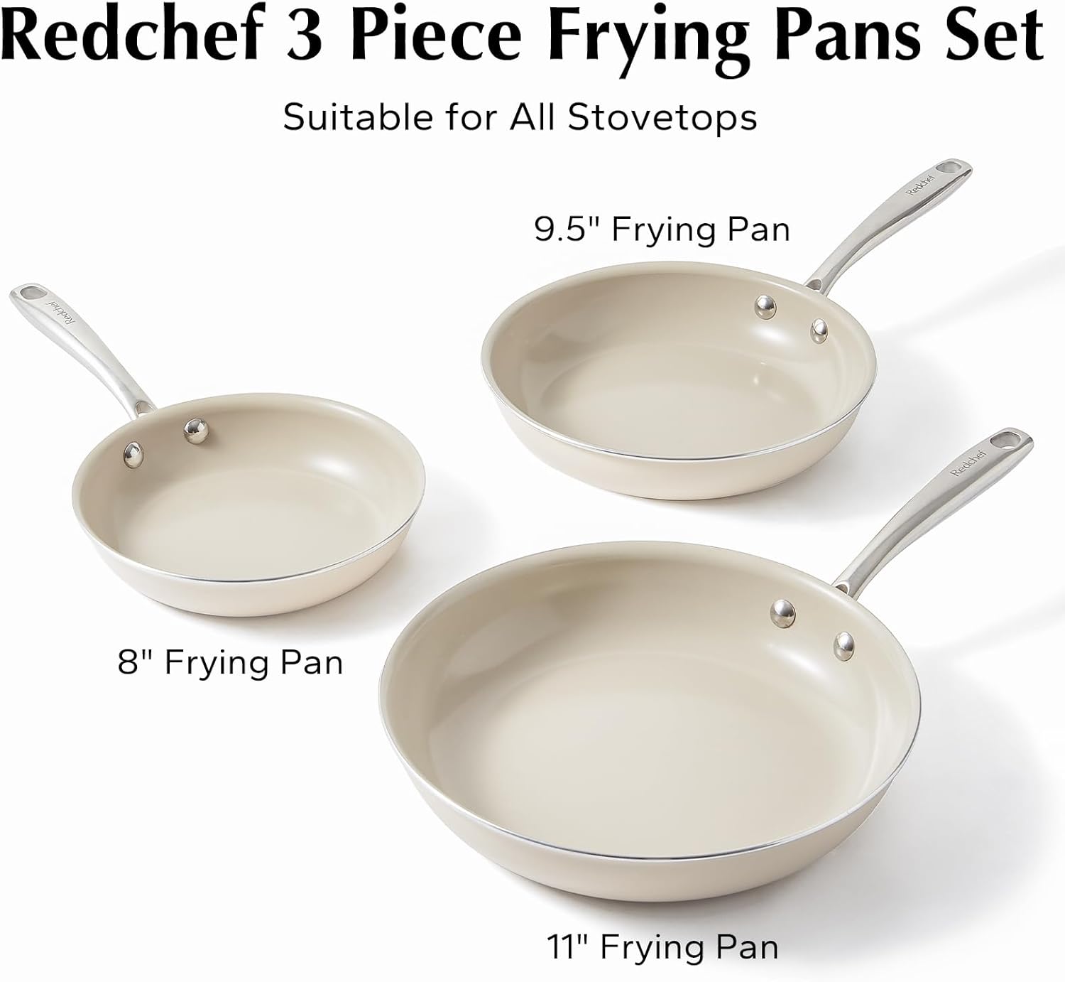 ست ماهیتابه نچسب Redchef، ست تابه سرامیکی، 20، 24، 28 سانتیمتری، تابههای غیر سمی برای پخت و پز، ست ماهیتابه سرامیکی 8 تا 11 اینچی، بدون PFAS، PTFE و PFOA، با دسته استیل،