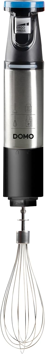 VIELSEITIGE STABMIXER SET – Mit Mixstab, Schneebesen, Zerkleinerer & Spiralschneider ist der DOMO Stabmixer perfekt für Suppen, Dips, Schlagsahne oder Gemüsenudeln geeignet EXTRA FEINE MIXERGEBNISSE – Die Quad-Blade Edelstahl-Klingen garantieren klumpenfreie Resultate ohne Ansaugung oder Spritzer – ideal für Suppen, Smoothies oder Pesto STABMIXER ELEKTRISCHER MIT 800W – Der starke DC-Motor sorgt für effizientes Mixen und Schneiden, mit stufenloser Geschwindigkeit und ergonomischem Ergo-Press-Griff SPIRALSCHNEIDER FÜR GESUNDE MAHLZEITEN – Mit 2 Klingen für dünne oder breite Streifen zauberst du kreative Gemüse-Spaghetti oder Obst-Deko im Handumdrehen HOCHWERTIGES DESIGN & LEICHTE REINIGUNG – Edelstahlgehäuse, LED-Licht & abnehmbare Zubehörteile machen den DOMO Elektrische Hand Blender pflegeleicht und langlebig | قیمت یورویی : 59.49€