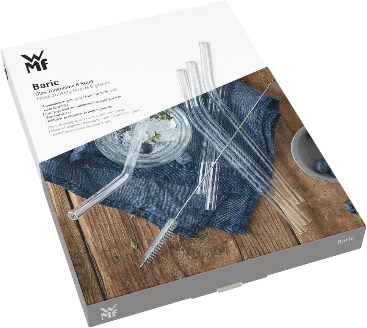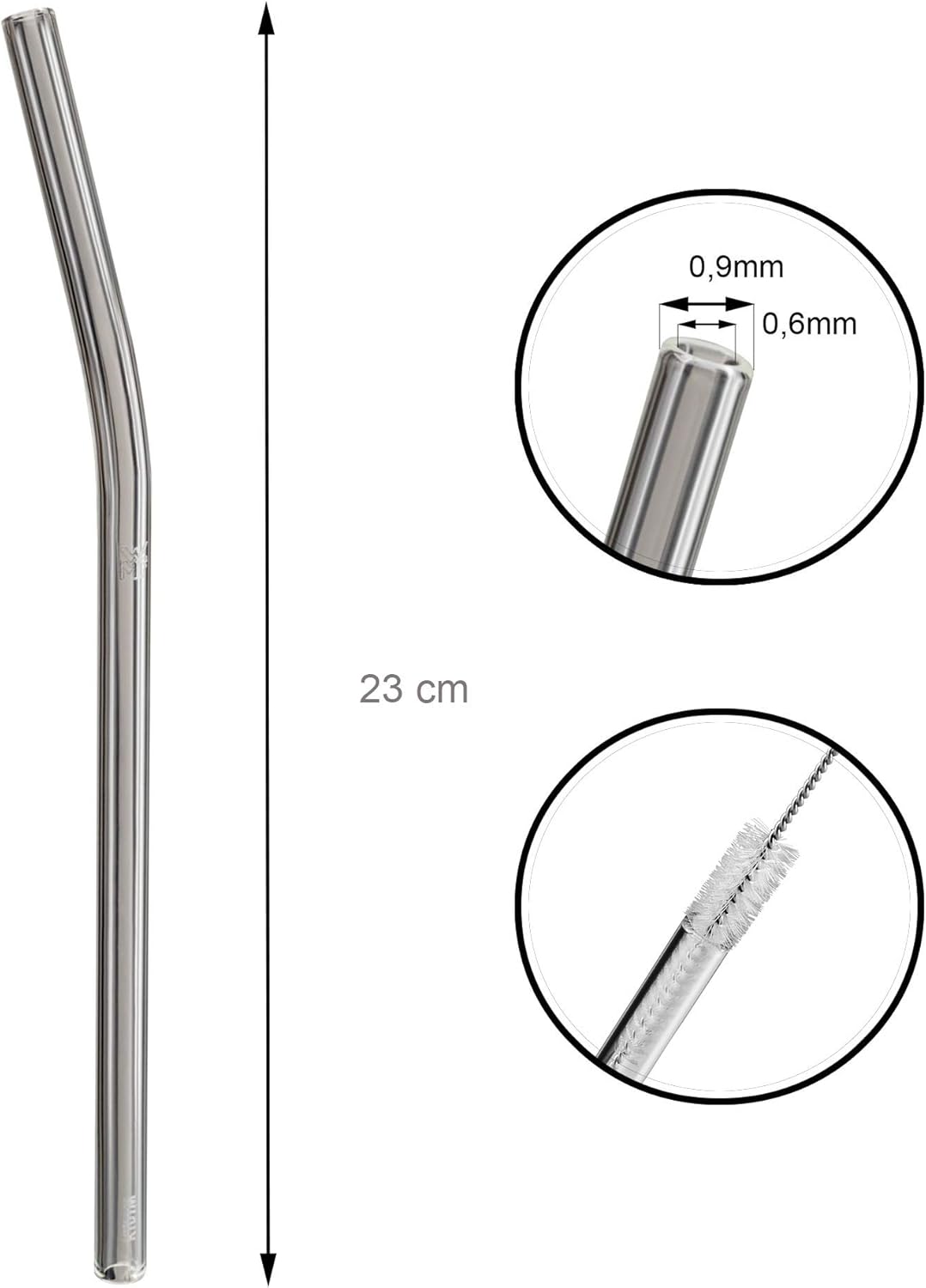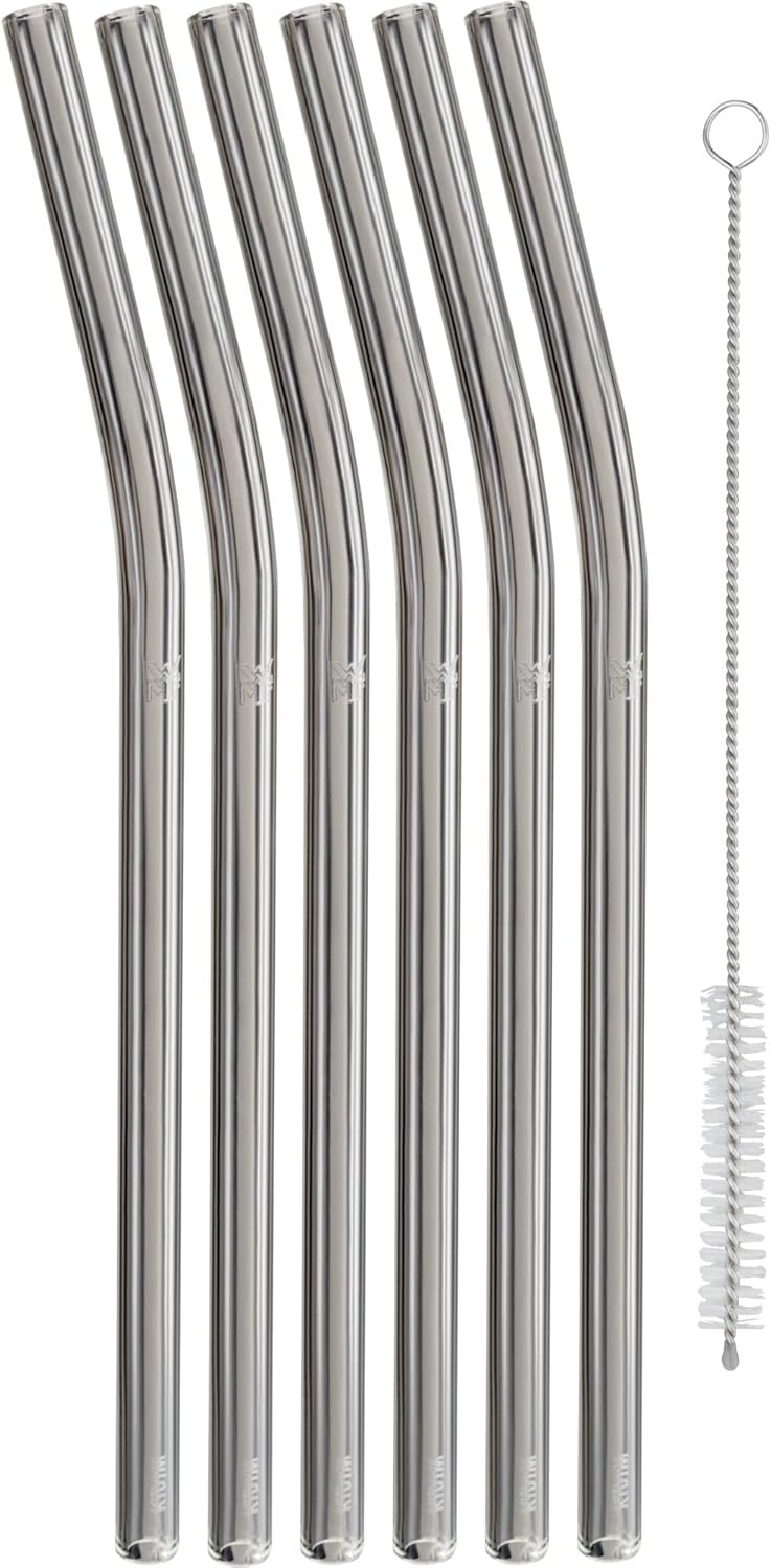 WMF Baric Glasstrohalme-Set 7-teilig, 6 Trinkhalme gebogen mit Reinigungsbürste, umweltfreundlich, Strohhalm wiederverwendbar, für Heiß-/ Kaltgetränke | قیمت یورویی 9.99€