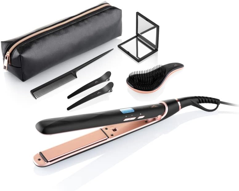 ETA Glätteisen Fenite I Geschenkset I Keramikplatten I LCD Display I Haarbürste, Kamm, Haarspangen und Etui Inklusive I Haarglätter