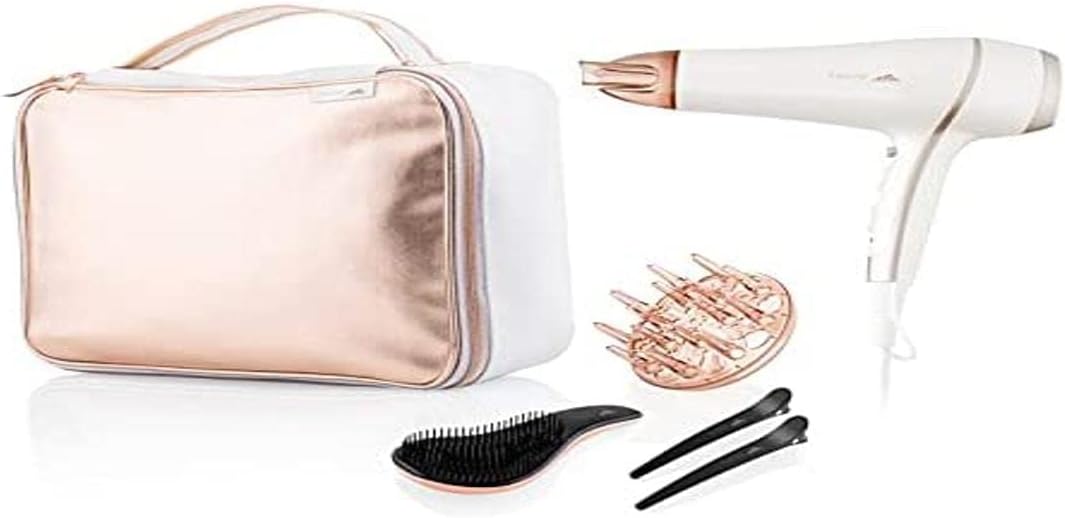 این مجموعه کاربردی شامل یک سشوار شیک ۲۴۰۰ واتی، یک برس برای باز کردن موثر گره مو و گیرههایی برای محکم کردن تارهای مو هنگام حالت دادن به آنها است. این سشوار قدرتمند دارای طراحی زیبا با خطوط صاف است و میزان صدای آن بیش از 82 دسیبل نیست. عملکرد یونیزاسیون از خشک شدن محافظت میکند. فیلتر قابل جابجایی، تعمیر و نگهداری را آسانتر میکند. دستگاه را میتوان به راحتی با استفاده از حلقهی کاربردی آویزان کرد. یک جیب زیپدار شیک برای نگهداری وسایل تعبیه شده است. این مجموعه شامل یک برس و گیره مو است.