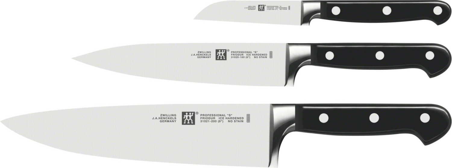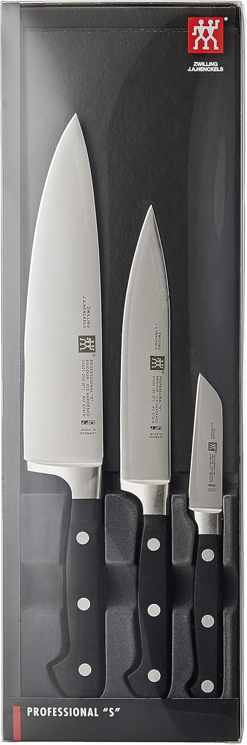ست چاقوی zwilling سری Professional S انتخابی ایدهآل برای آشپزهای حرفهای و علاقهمندان به آشپزی است. این ست شامل 3 چاقوی ضروری آشپزخانه بوده که با تیغههای بادوام و مقاوم FRIODUR®، برش دقیق و سریع انواع مواد غذایی را آسان میکند.