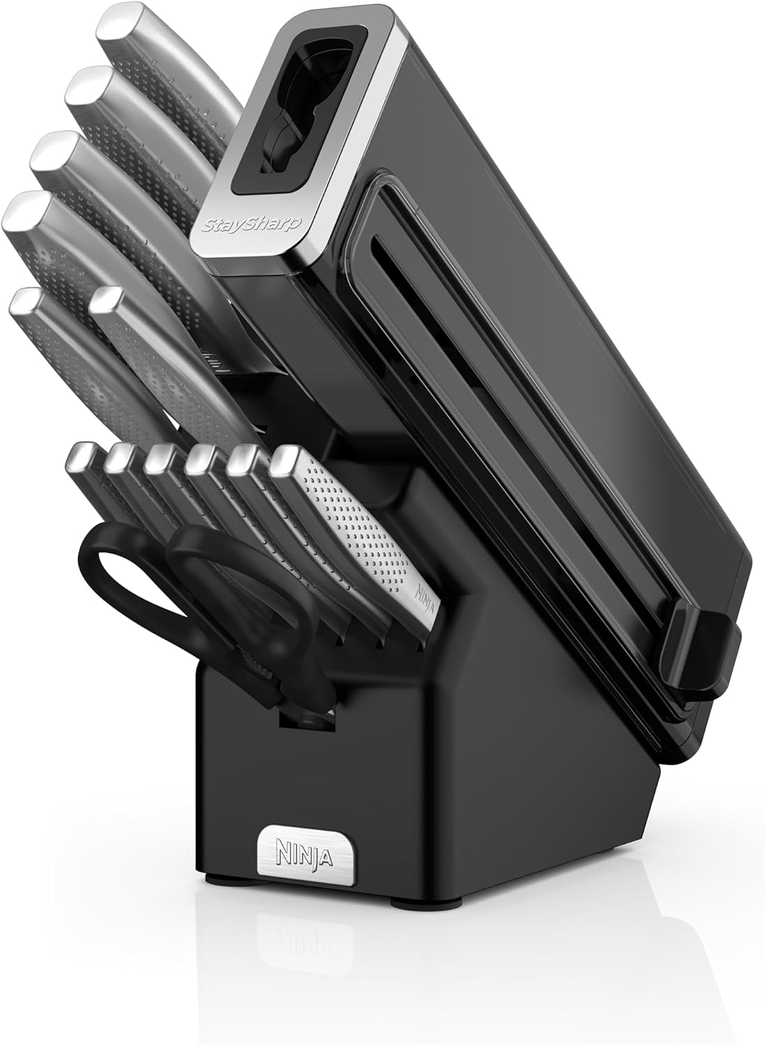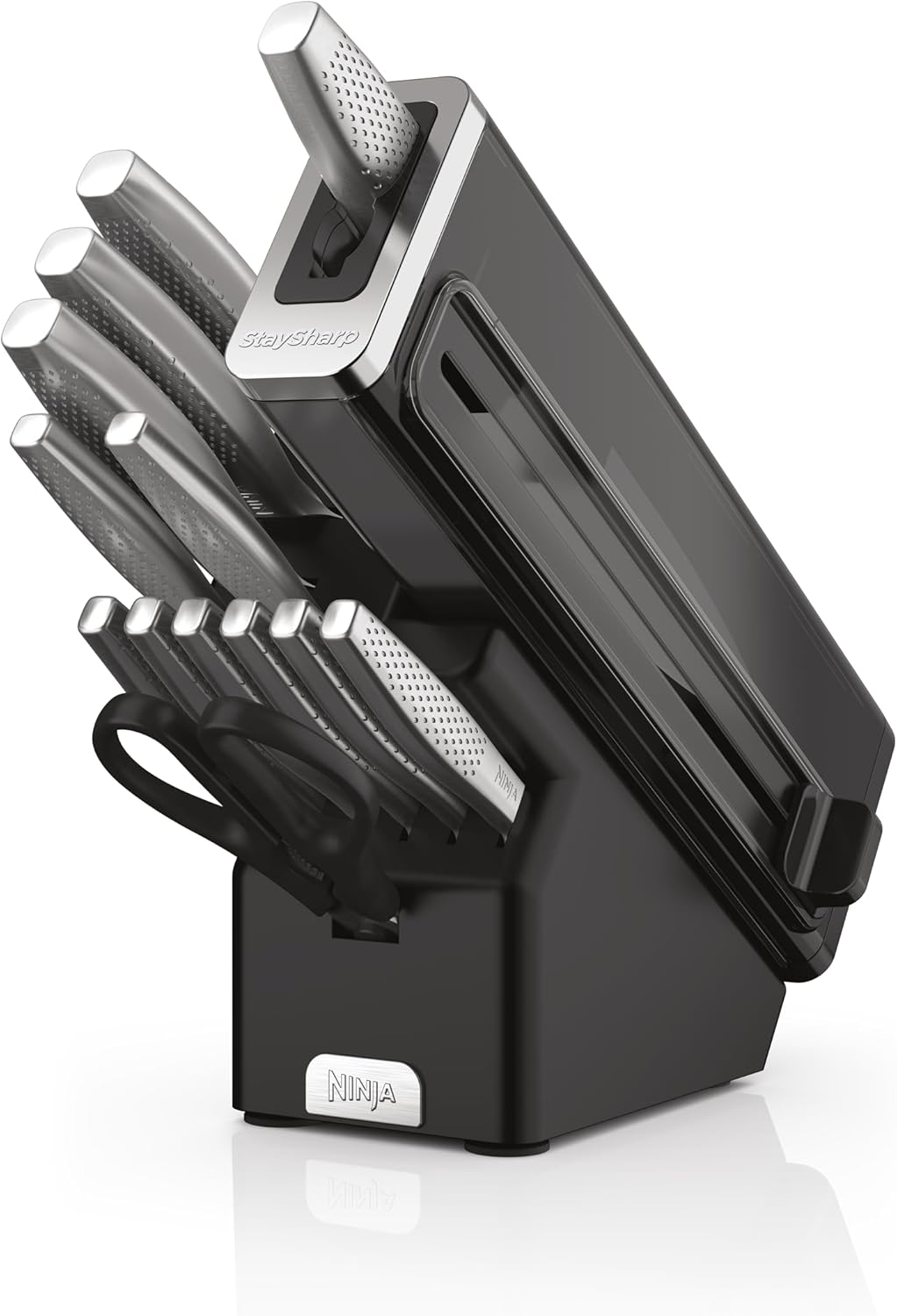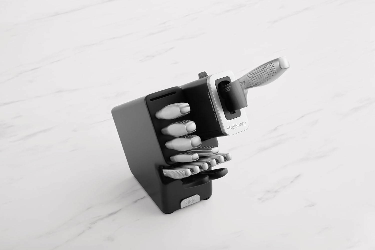 ست چاقوی استیل ضد زنگ ۱۴ تکه Ninja StaySharp با بلوک چوبی زغالی و تیزکن چاقوی یکپارچه، ست چاقوی زغالی ۱۴ تکه K62014EUUK