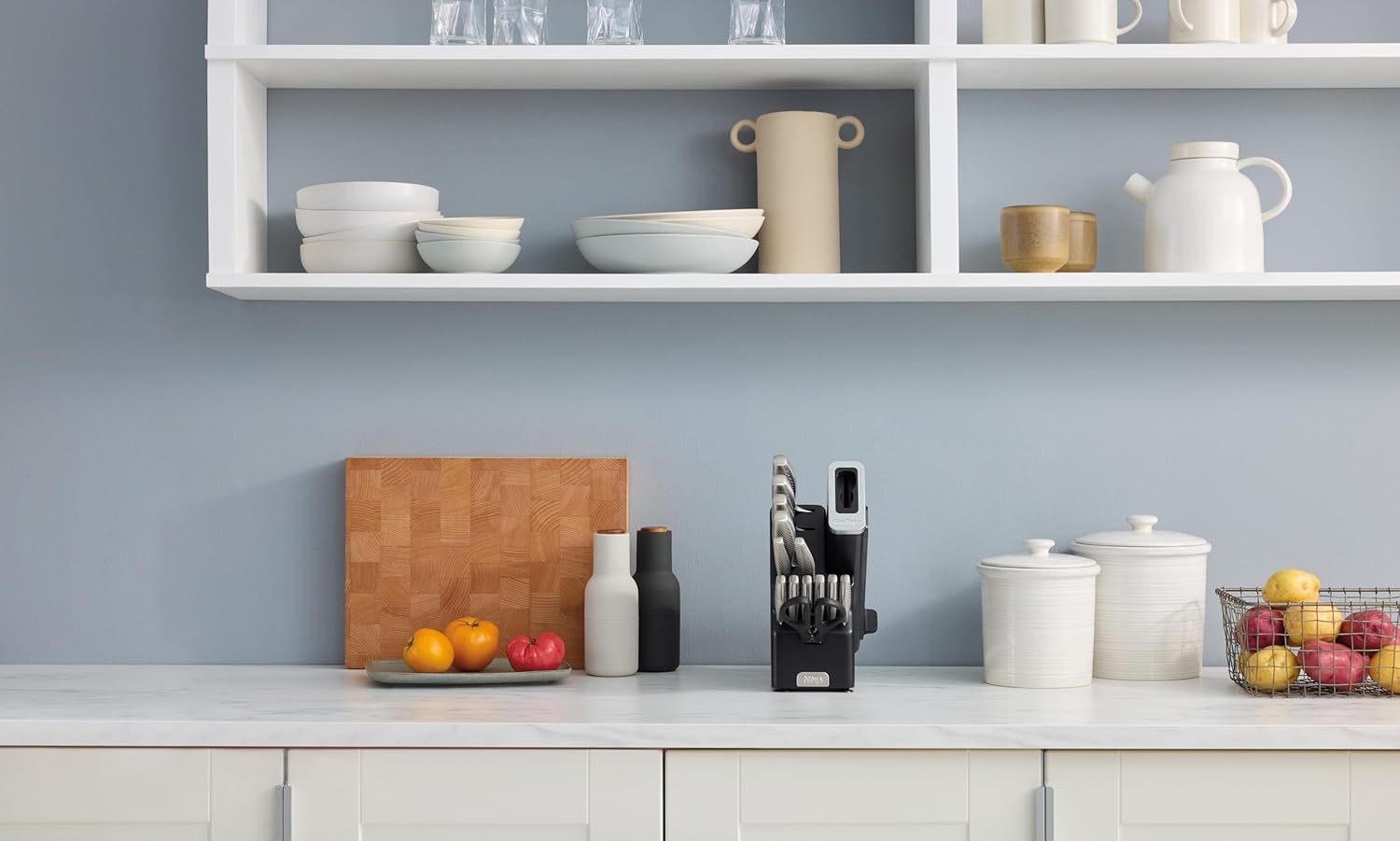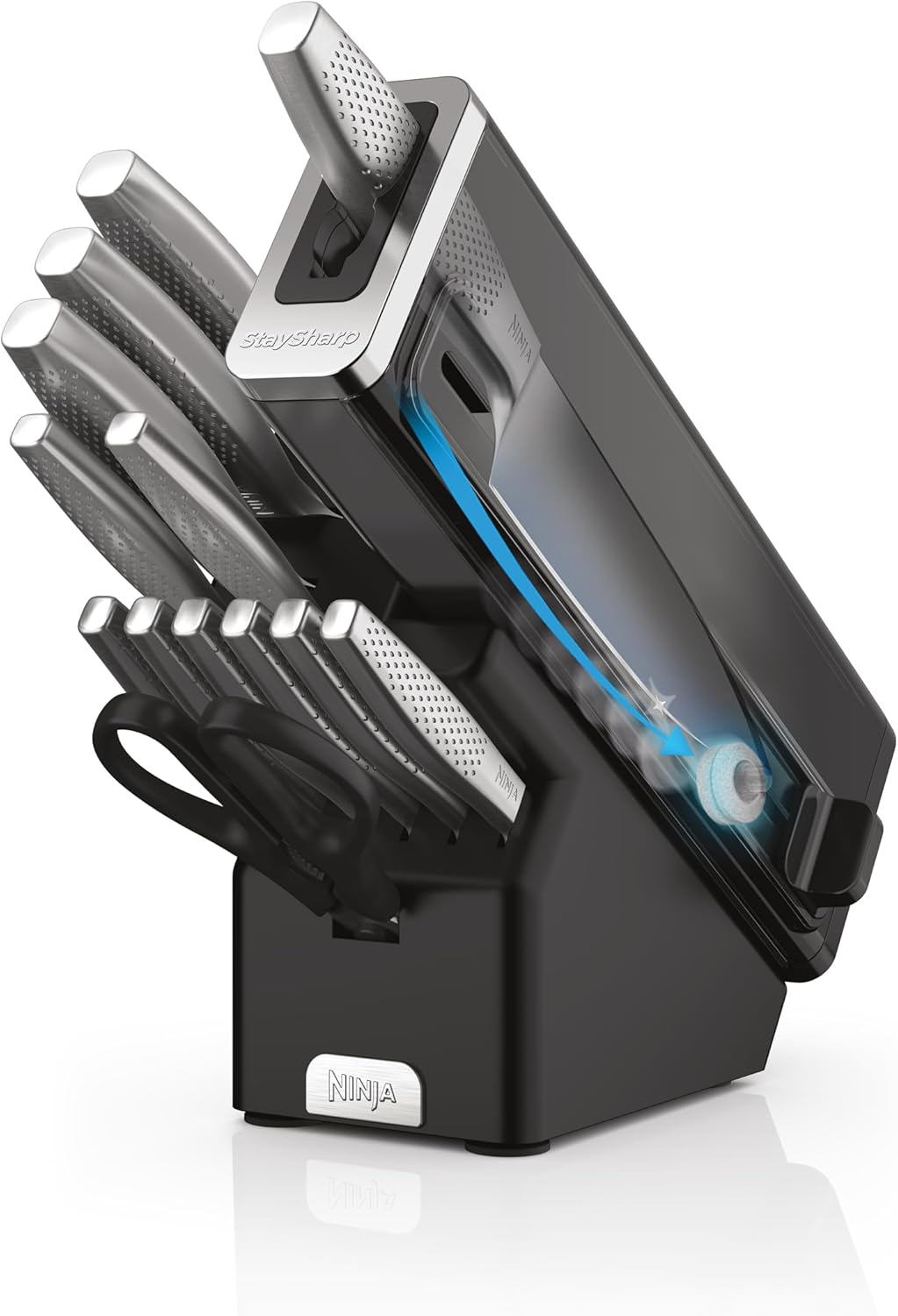 Ninja StaySharp Messerset aus Edelstahl, 14-teilig, Holzblock in Anthrazit & integrierter Messerschärfer, K62014EUUK 14-teiliges Messerset Holzkohle | قیمت یورویی 329.99€