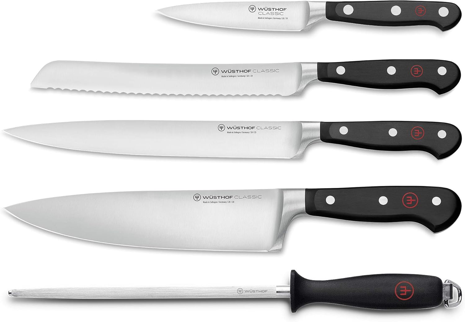 ست چاقوی کلاسیک WÜSTHOF با ۵ قطعه، مشکی، نقرهای