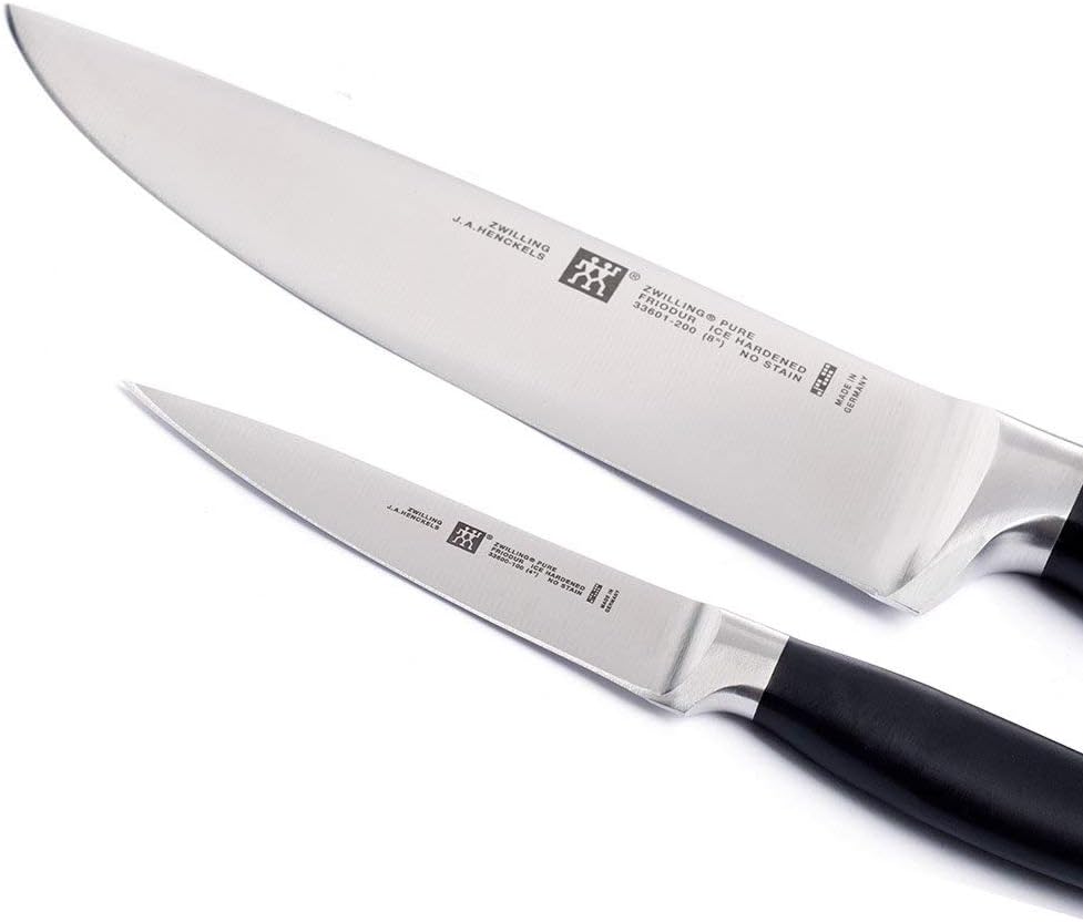 ست چاقوی zwilling سری Pure ترکیبی از طراحی مدرن و عملکرد حرفهای برای آشپزخانههای خانگی و رستورانها است. این ست شامل 2 چاقوی پرکاربرد آشپزخانه میباشد که برای برش انواع مواد غذایی از گوشت و سبزیجات تا نان ایدهآل است.