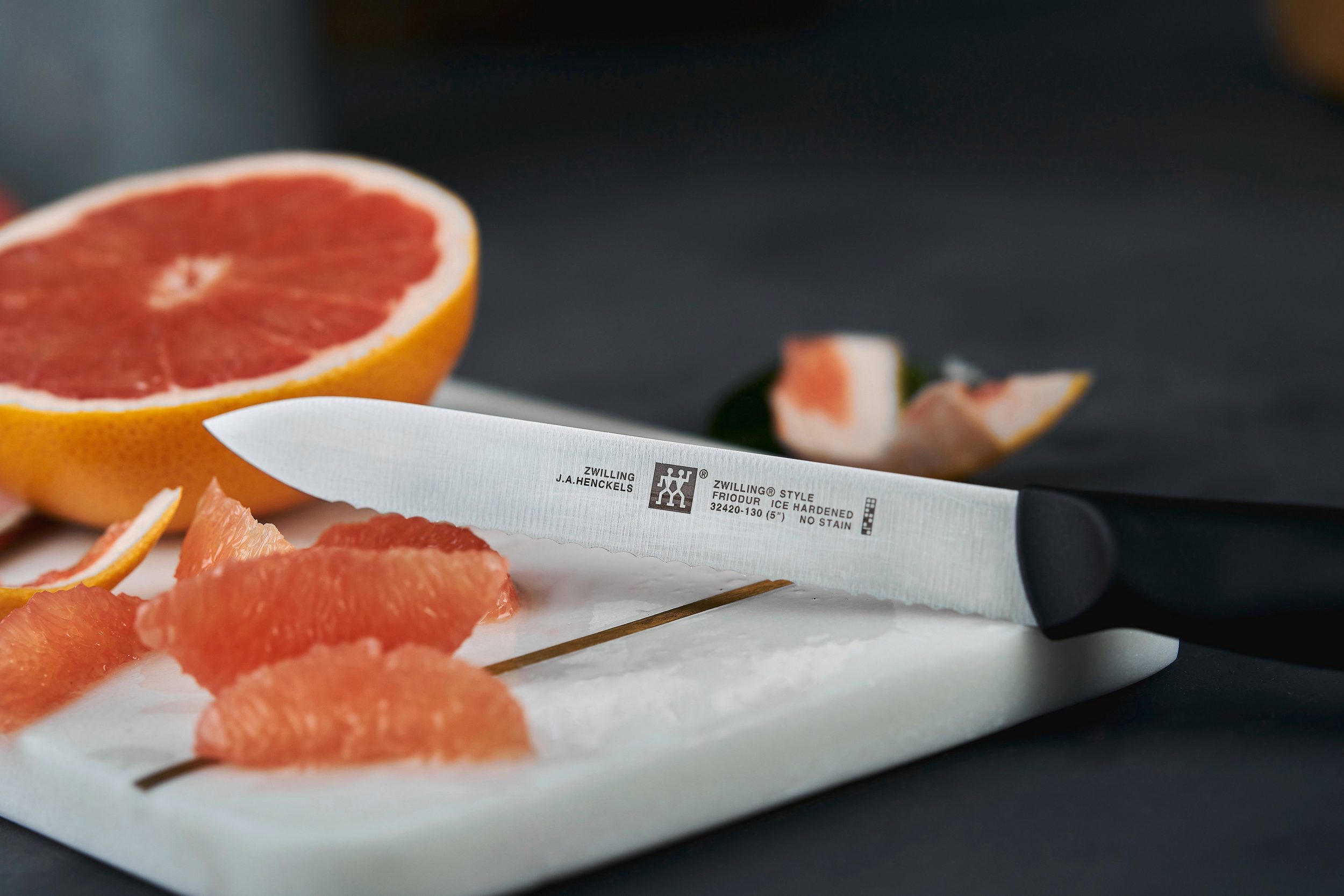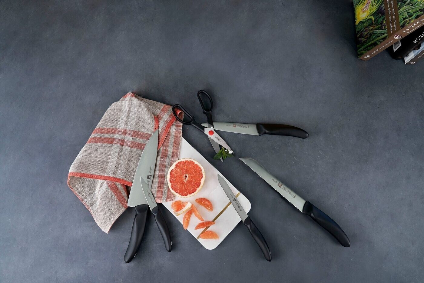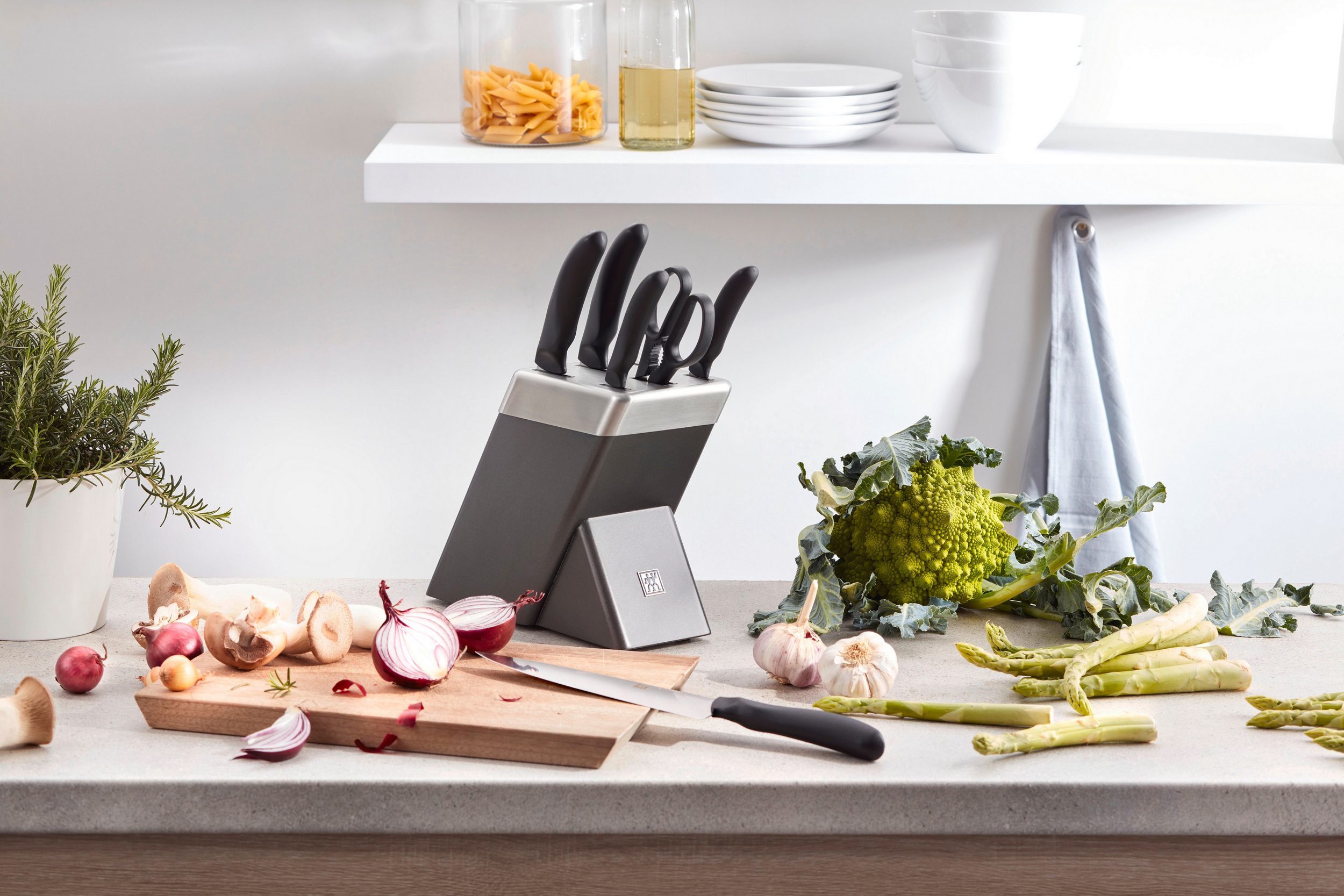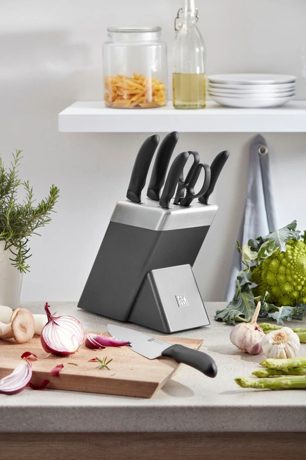 ست چاقوی zwilling سری Style با بلوک چوبی طوسی تیره (Anthrazit) و طراحی مدرن، گزینهای عالی برای کسانی است که به کیفیت و طراحی مدرن در آشپزخانه اهمیت میدهند. این مجموعه شامل 7 پارچه چاقوی ضروری آشپزخانه است که با تیغههای فولاد سختکاری شده FRIODUR®، دوام و کارایی بالایی دارند.