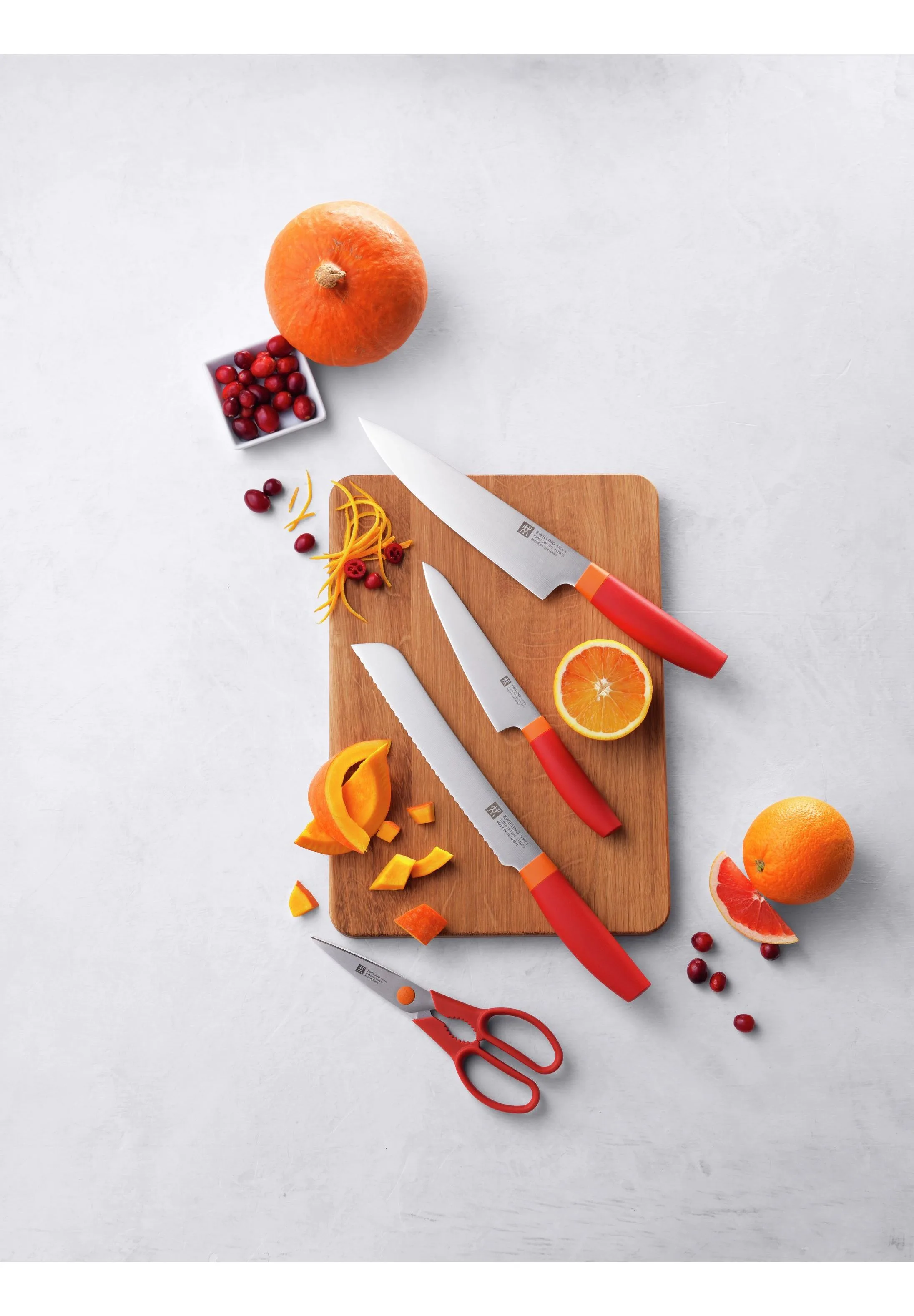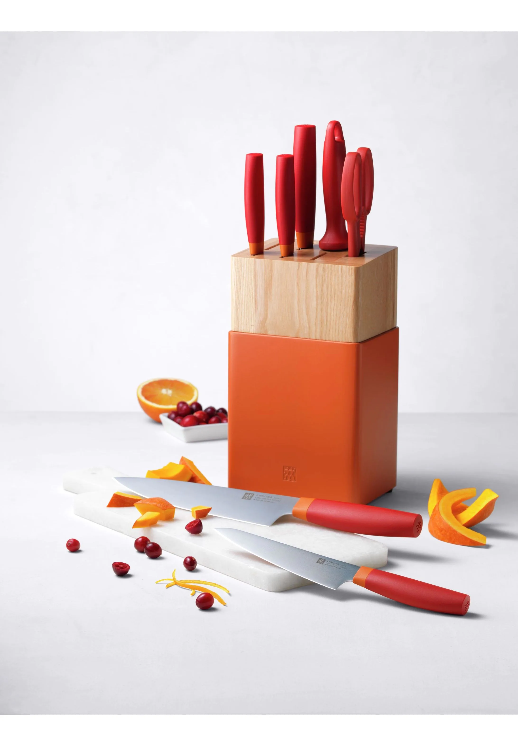 دستههای ارگونومیک پلیمیری با روکش ضد لغزش تجربهای راحت و ایمن را هنگام استفاده فراهم میکنند. علاوه بر این، این ست شامل یک تیزکن دستی مخصوص چاقوهای ZWILLING است که به حفظ عملکرد عالی چاقوها کمک میکند.