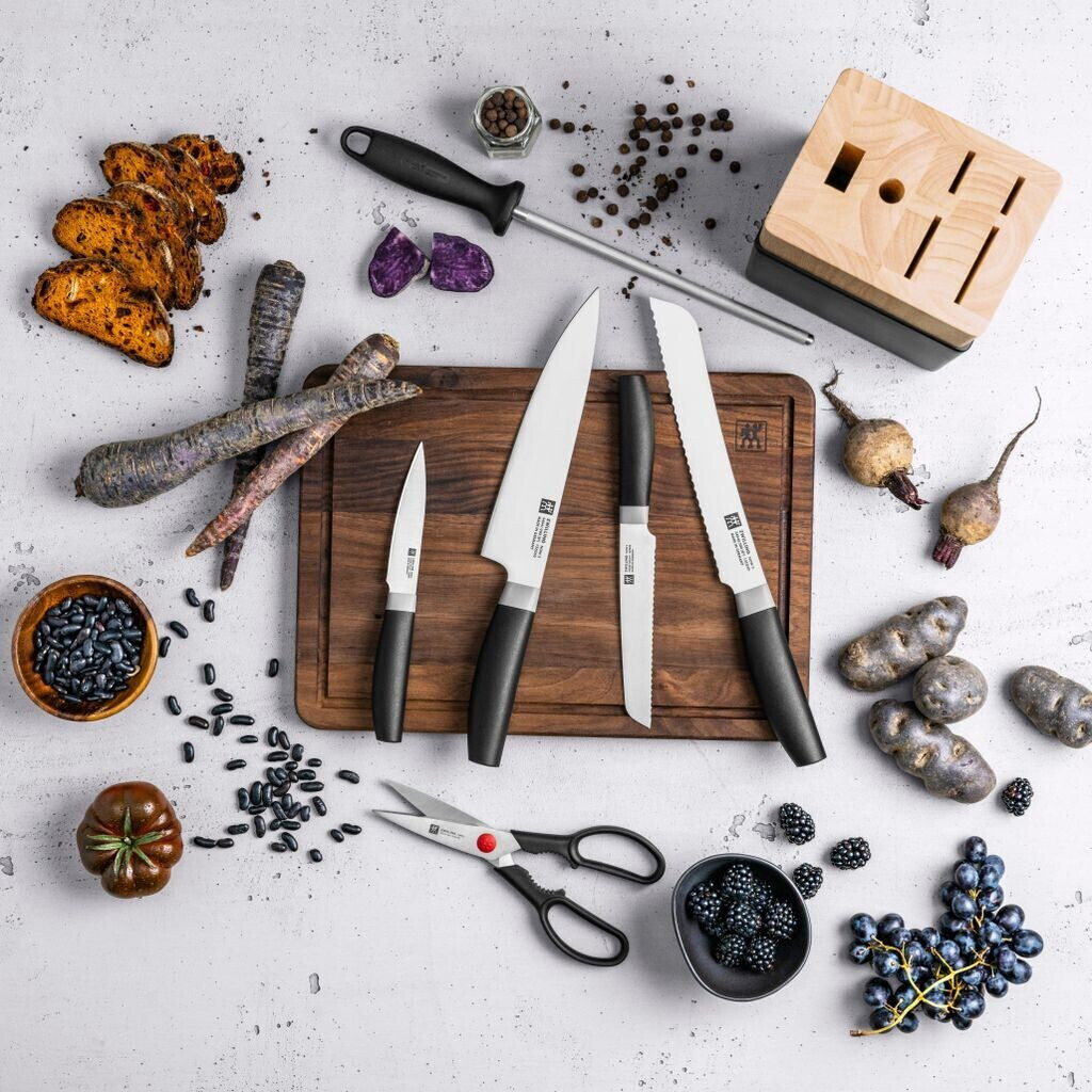 ست چاقوی zwilling سری Now S یکی از بهترین انتخابها برای آشپزهایی است که به کیفیت برش، دوام بالا و ارگونومی چاقوها اهمیت میدهند. این مجموعه شامل 8 پارچه چاقوی ضروری آشپزخانه است که در یک بلوک چوبی مشکی و مقاوم قرار گرفتهاند.